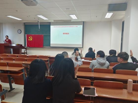 正式党员审议、表决、通过了研究生党支部委员会换届改选情况和换届选举办法(草案)、研究生党支部委员会委员候选人名单提案、研究生党支部委员会换届改选大会监票人、计票人建议名单提案。