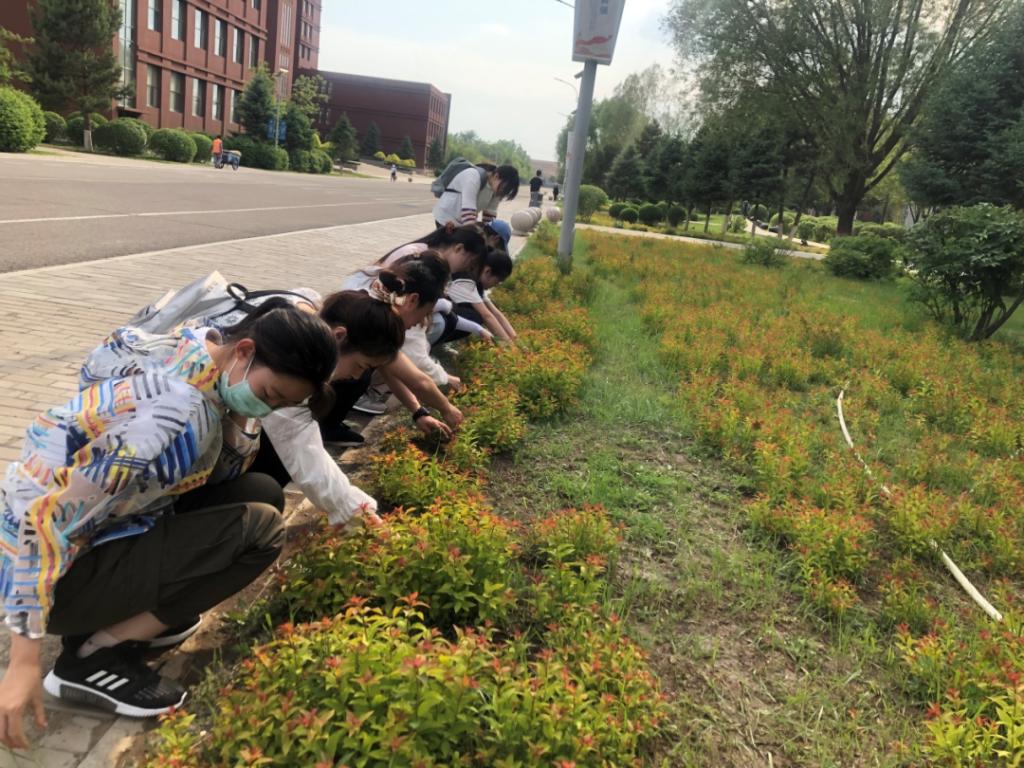 在后勤处指老师的指导下,同学们认真学习了除草栽花的要领。期间,365英国上市公司党总支副书记王丽来到现场,充分肯定了志愿者们的劳动成果。