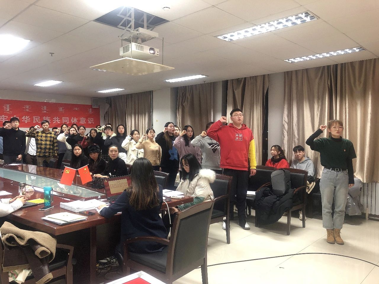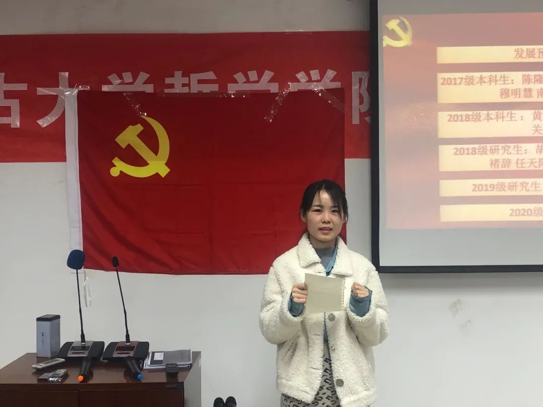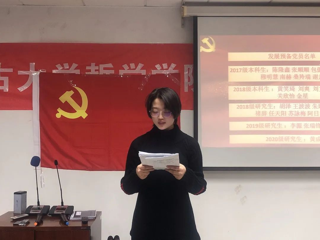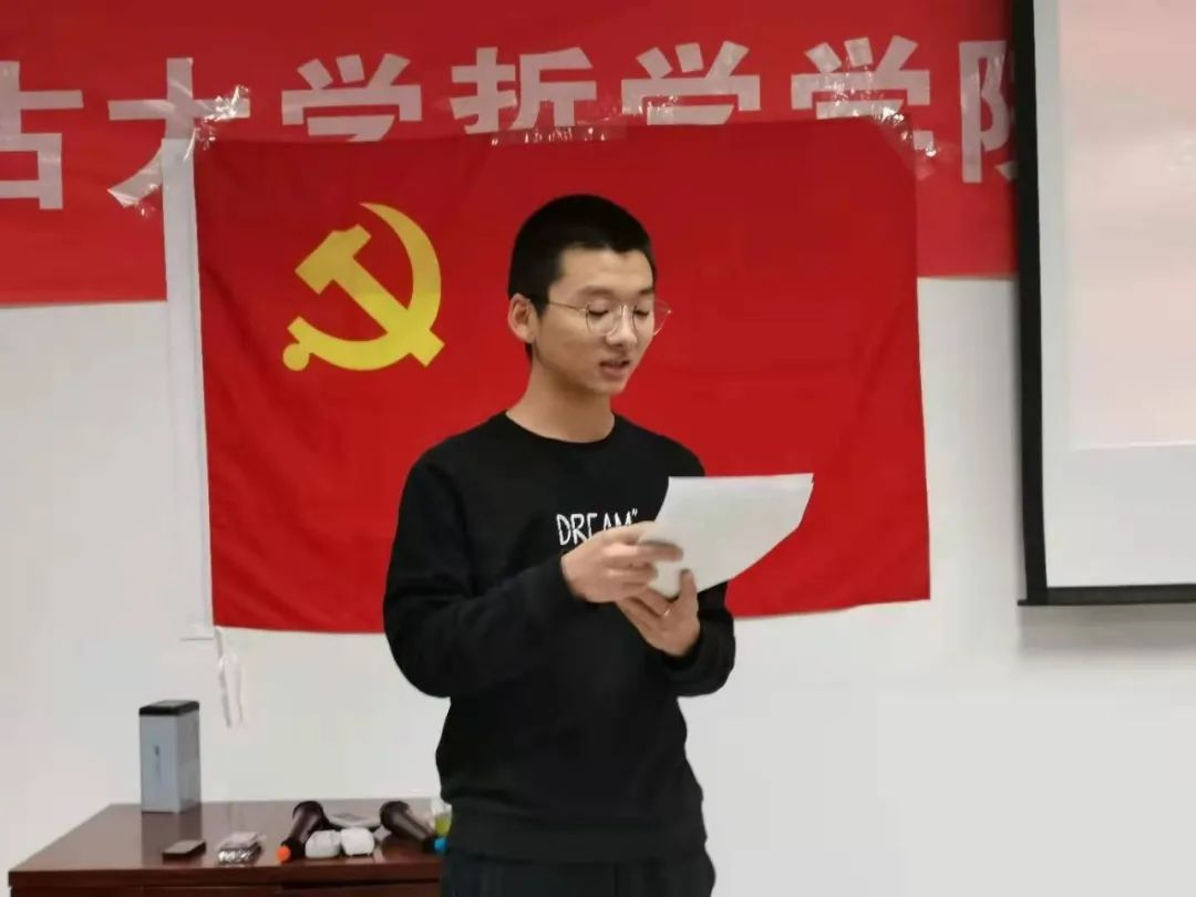 入党宣誓环节,党员同志们面向党旗,举起右拳,坚定宣誓。他们的声音高亢激昂,充满了对中国共产党的崇高敬意和对祖国的真挚热爱之情。大会结束之际,学生党支部书记张晓楠希望党员同志能能牢记入党誓词,不忘初心,勇担使命,不断提高自己的政治理论水平和实践能力,为祖国和社会的发展贡献自己的力量。