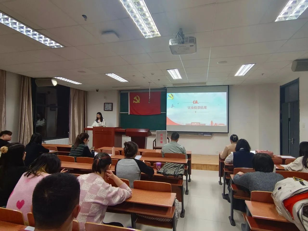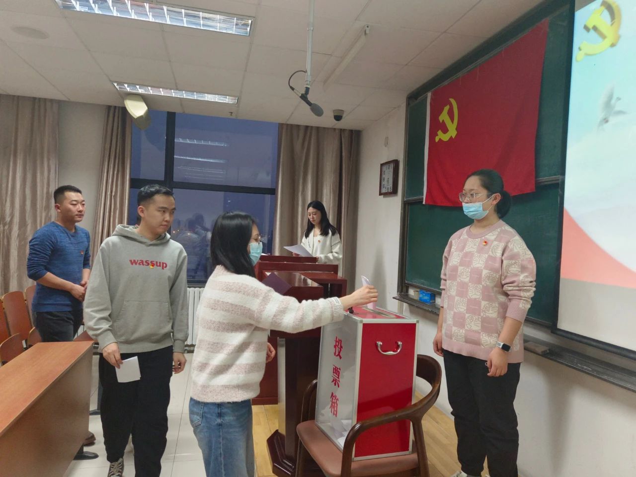 具有表决权的与会党员在听取各位预备党员的汇报及入党介绍人的意见后,进行现场无记名投票表决,研究生党支部副书记赵予祺宣布票决情况及支部大会决议。