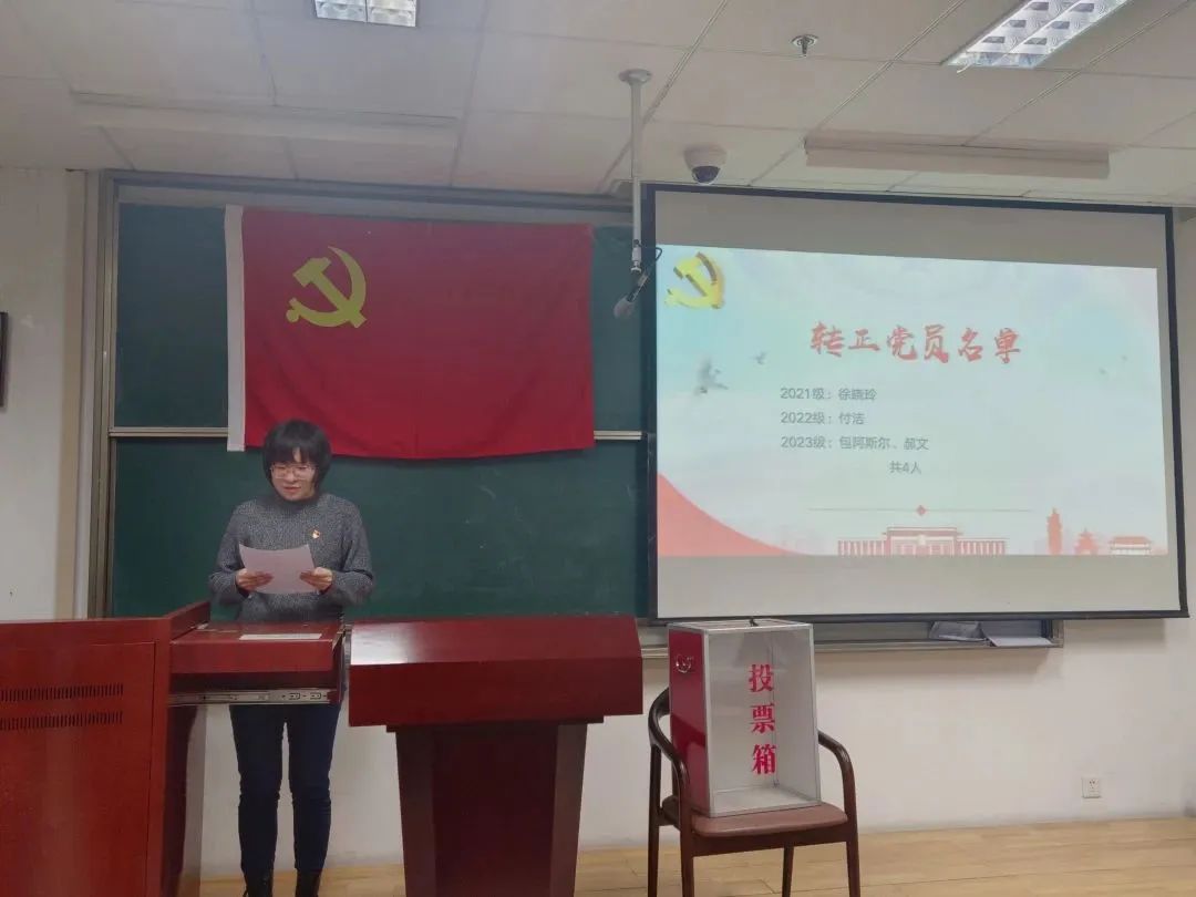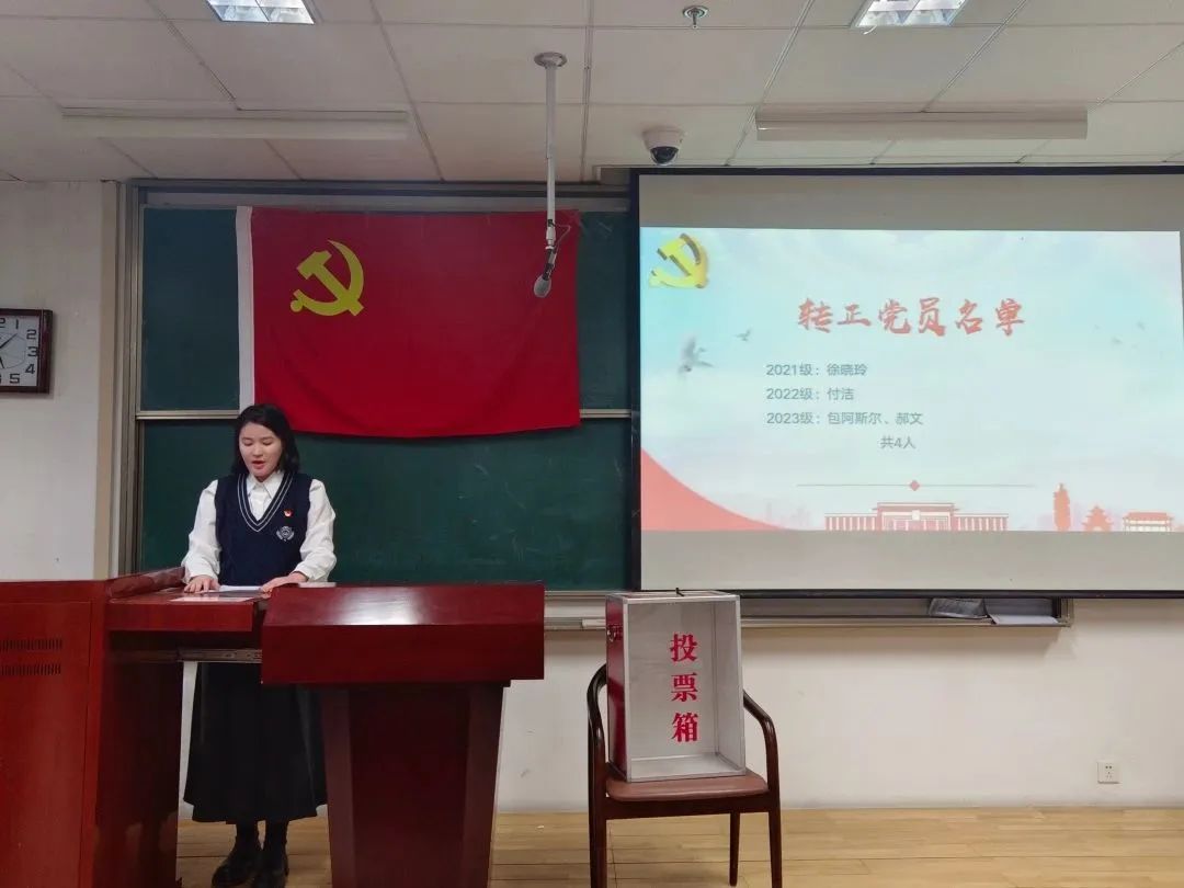 2023年12月26日下午5:00,365英国上市公司于卓越楼0606召开研究生党支部预备党员转正大会。本次会议对徐晓玲等4名预备党员是否按期转正进行讨论和表决,此次会议由研究生党支部副书记赵予祺主持,365英国上市公司党委副书记郭晓飞莅临指导,365英国上市公司研究生党支部正式党员、预备党员参与会议。