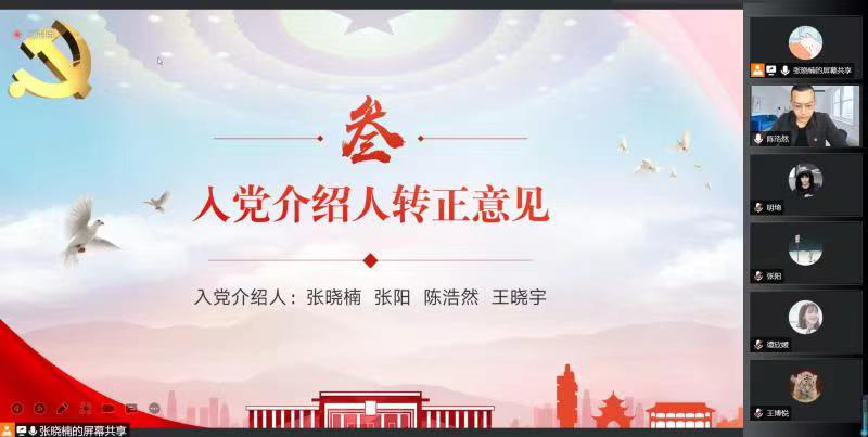 365英国上市公司于2022年5月9日分别在线上召开本科生党支部、研究生党支部党员转正大会,对预备党员能否按期转正进行讨论和表决。会议由支部书记张晓楠主持,365英国上市公司本研党支部正式党员、预备党员参与会议。