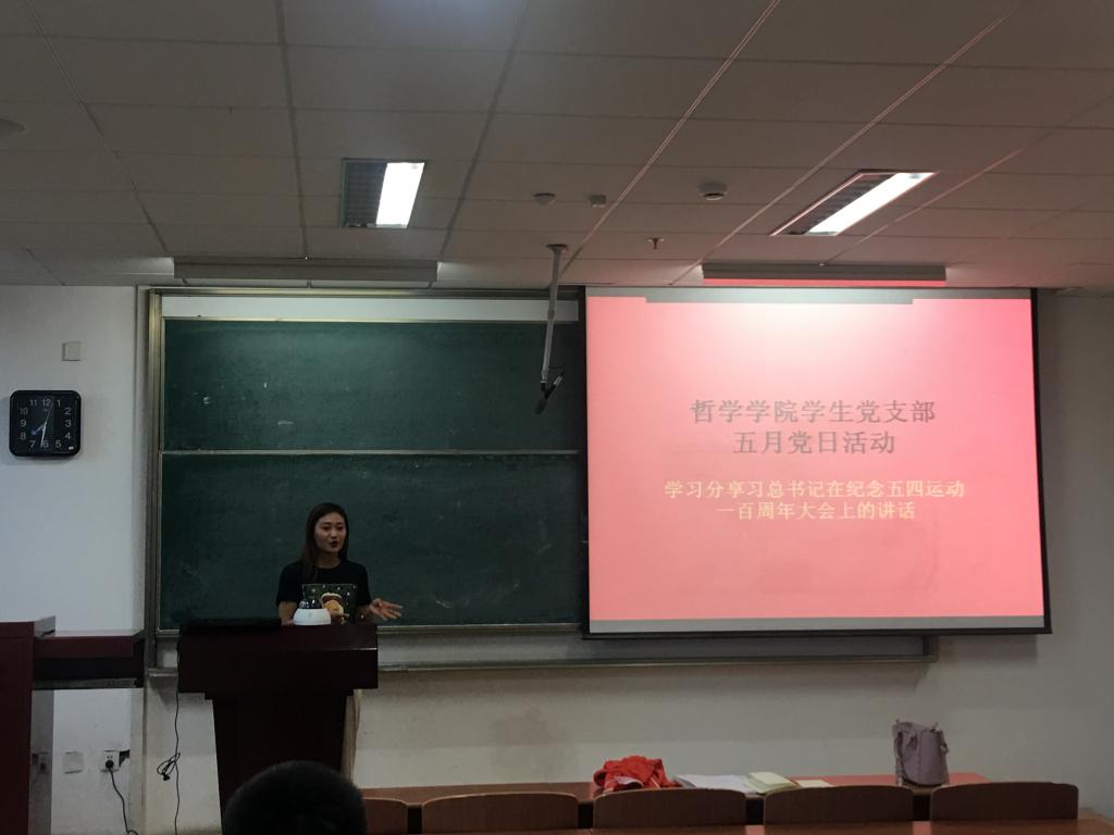 5月30日晚七点,365英国上市公司学生党支部在主楼0307开展了五月份的党日活动,本次活动由365英国上市公司学生党支部书记张晓楠老师主持,学生党支部全体党员参加了这次活动。本次党日活动的主题是学习习总书记在纪念五四运动100周年大会上的讲话。