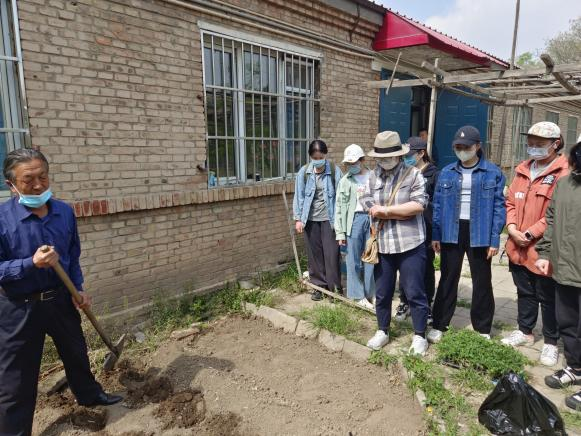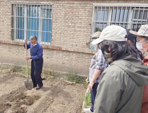 在春种开始前,管理科科长太利老师,值班教师冯海旺老师和退休职工董然利老师为志愿者们细致地讲解了春种的含义,并耐心地教导了各位志愿者播种的细节。
