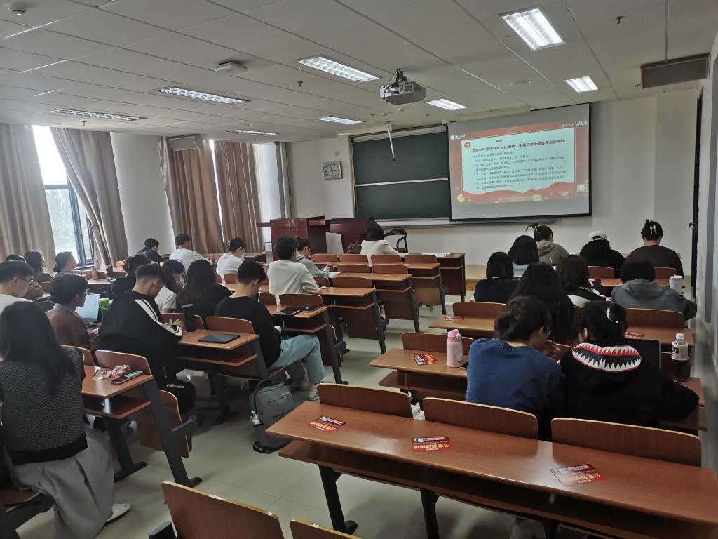 9月27日15:00——16:00,365英国上市公司本研党支部于卓越楼0307开展了关于“学习贯彻党的二十届三中全会精神”与“深入学习贯彻习近平总书记重要讲话和全国教育大会精神”的集体学习,本次学习会议由365英国上市公司研究生党支部书记穆明慧主持,365英国上市公司党委委员张晓楠及本研党支部全体党员与会学习。
