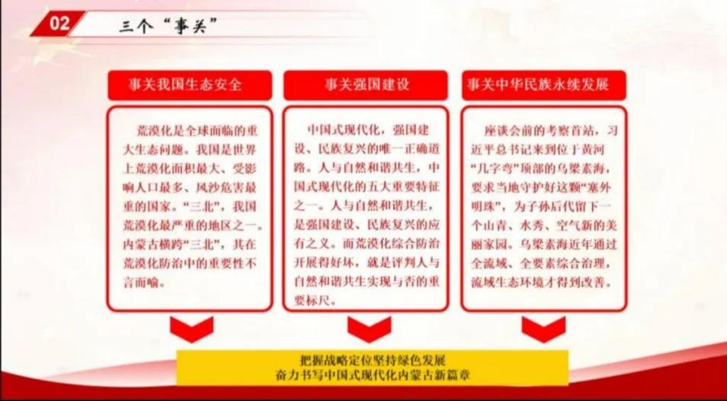 通过此次学习,各位党员同志深入学习领会了习近平总书记在考察内蒙古期间重要讲话精神的重大意义、丰富内涵和实践要求。内蒙古作为我国北方重要的生态安全屏障,要统筹山水林田湖草沙综合治理,精心组织实施京“三北”防护林体系建设等重点工程,加强生态保护红线管理,在祖国北疆构筑起万里绿色长城。