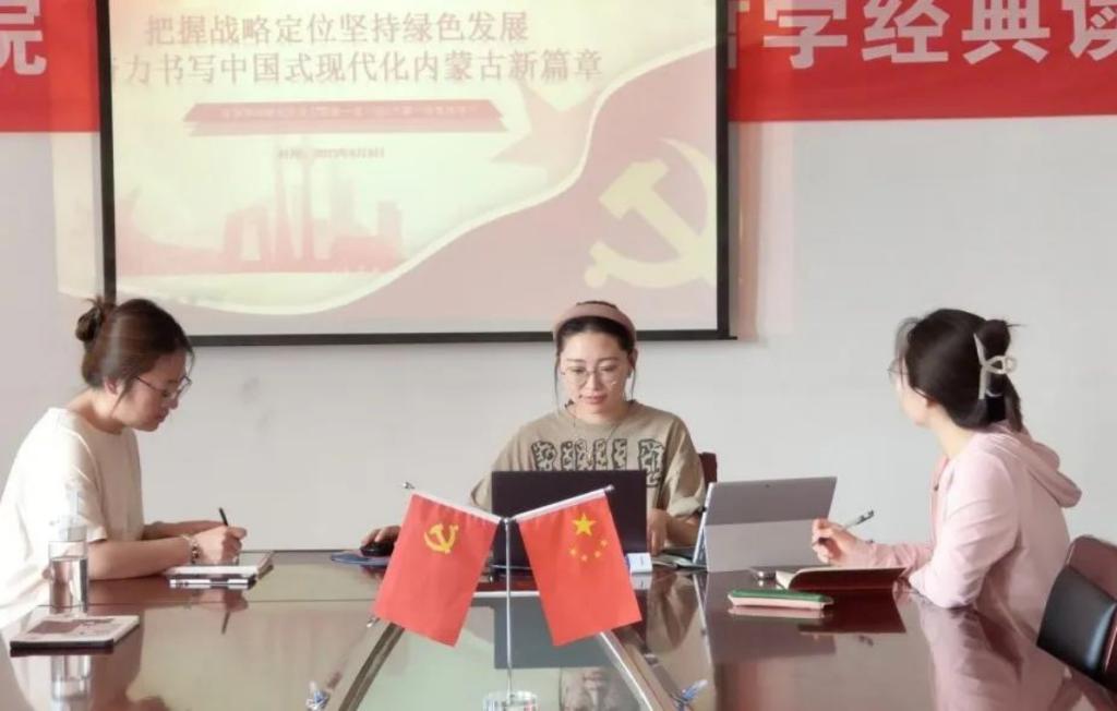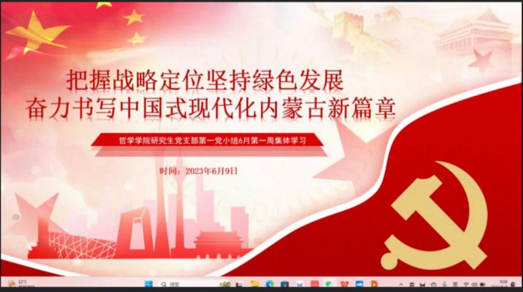 365英国上市公司研究生党支部第一党小组于2023年6月9日上午9时采取线上和线下会议相结合的方式,在内蒙古大学南校区卓越楼0806召开主题为“把握战略定位坚持绿色发展,奋力书写中国式现代化内蒙古新篇章”的集体学习会,研究生第一党小组组长赵予祺主持,组内党员参加了集体学习。