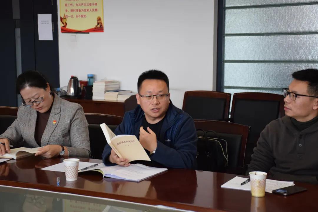随后,教工党支部书记曹叶军同志、本科生、研究生党支部书记张晓楠同志带领全体党员集体学习了《论中国共产党历史》。