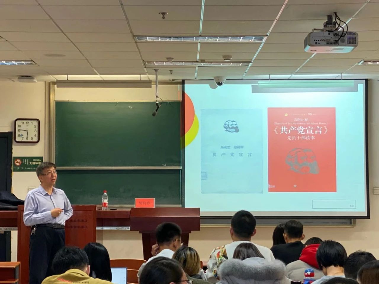 2020年11月19日16:30,365英国上市公司党总支邀请内蒙古大学数学科学学院党委书记胡利春在南校区卓越楼0503作了一场题为《共产党人的理想信念》的专题报告,本次党课报告由365英国上市公司党总支副书记王丽主持,365英国上市公司入党积极分子、青马班学员共60余人参加。