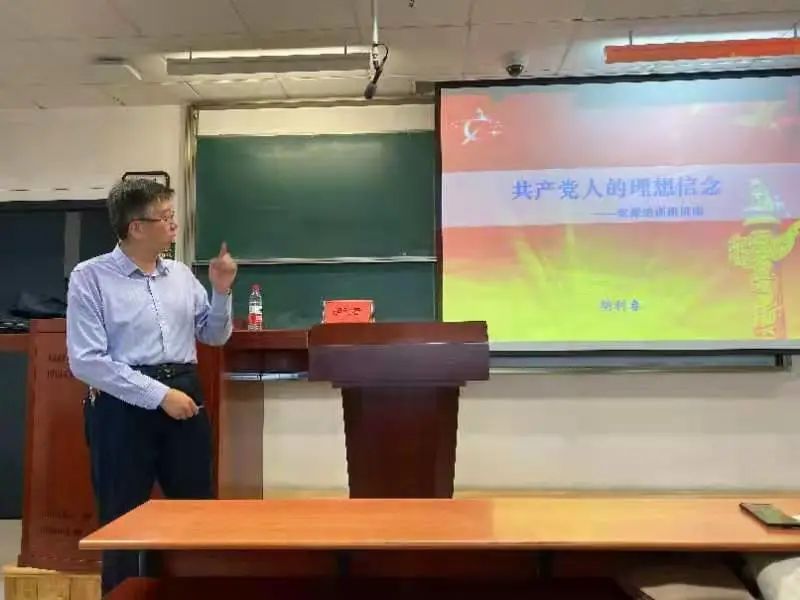 胡利春书记带领全体师生党员深入学习共产党人的理想信念,勉励大家树立坚定的理想信念,并且从三个角度对主题进行了清晰简明的阐述:首先,坚定理想信念是共产党人安身立命的根本。胡利春书记引经据典,用具体事例激励师生坚定理想信念;其次,胡利春书记分析了坚定理想信念、坚守共产党人精神追求面临的主要挑战;接着胡利春书记阐述了坚定理想信念、加强党性修养的基本途径。最后,胡利春书记提出了一个令人深思的问题:为什么要加入中国共产党?