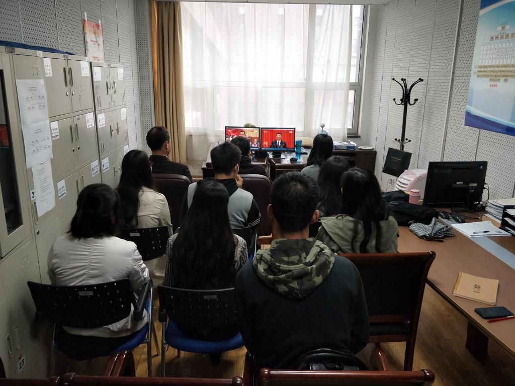各位老师和同学早早来到办公室,积极调试电脑和音响,纷纷表示对大会报告内容充满期待。9时整大会正式开始,由李克强总理主持。与大会进程同步,我院参加集体观看大会直播的师生全体起立,高唱《中华人民共和国国歌》,并为老一辈无产阶级革命家和革命先烈默哀。随后,我院师生认真聆听了习近平总书记代表十八届中央委员会向大会所做的报告。大会直播期间,参加集体观看直播的师生一次次被报告中直抵人心的内容所鼓舞、振奋,随着大会现场一同爆发出一次次喝彩和掌声。参加观看的老师和学生纷纷表示,这是一次令人鼓舞和振奋的大会,习总书记的报告说出了每个人的心声,大大增强了每个中国人的荣誉感和使命感,我们将在伟大的中国共产党的带领下,不忘初心、牢记使命,为实现中华民族伟大复兴不解努力!