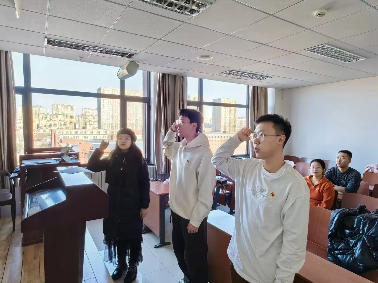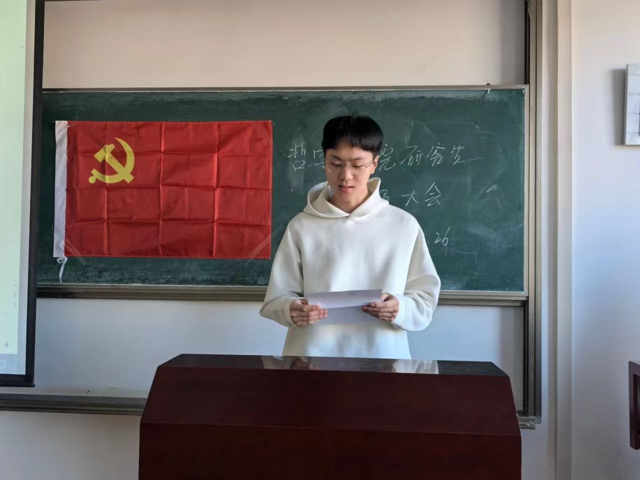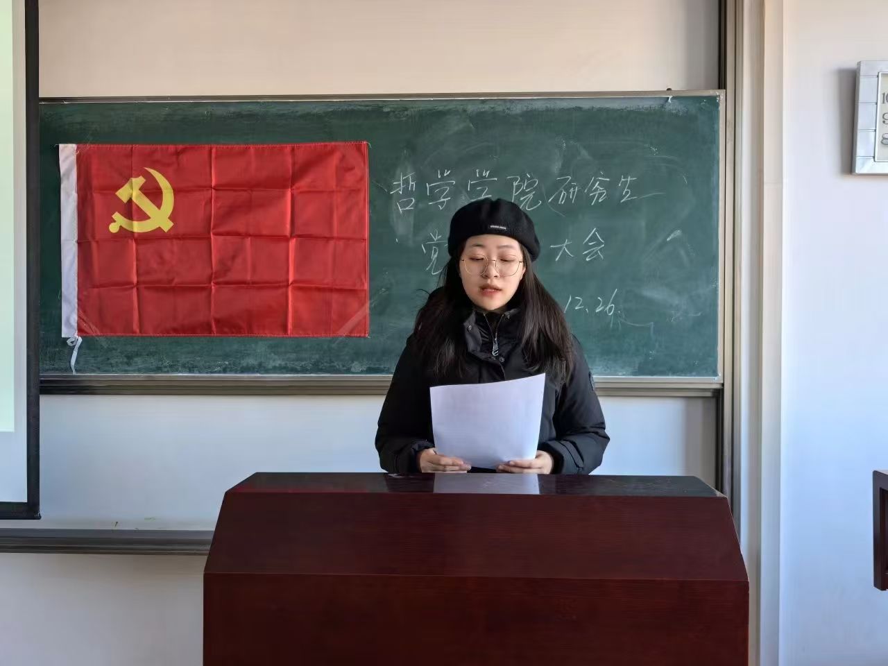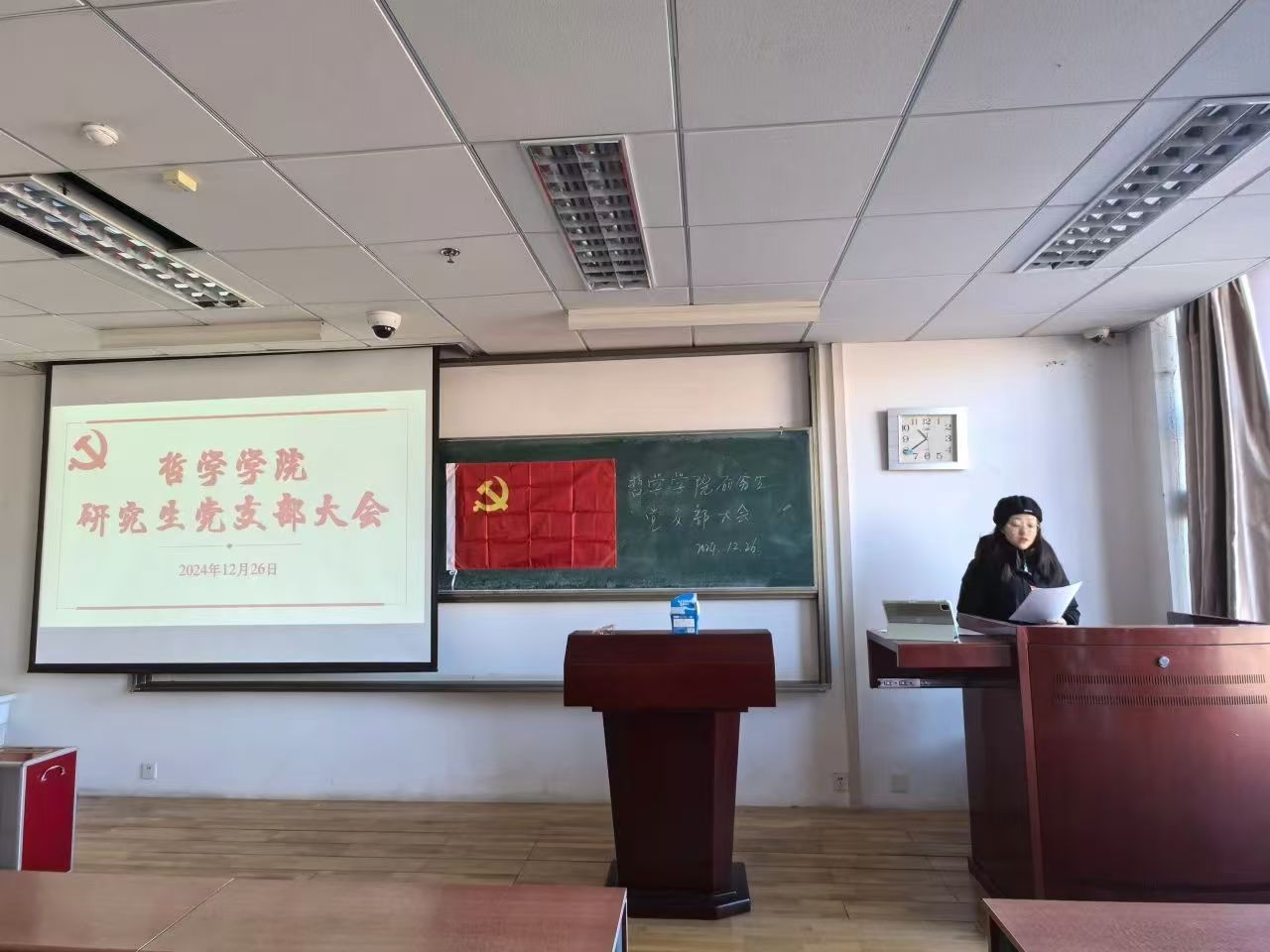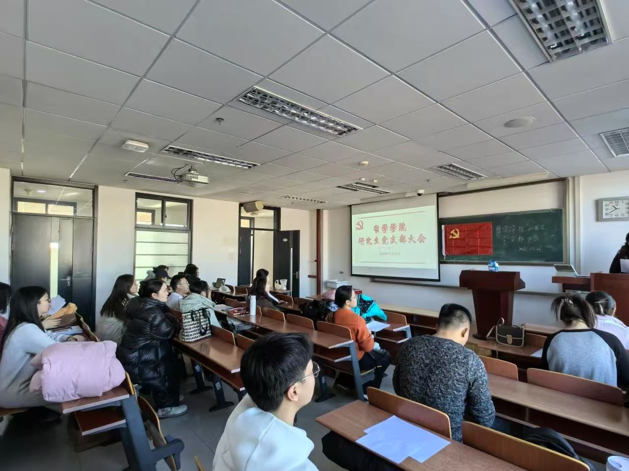 具有表决权的与会党员在听取两位同志的汇报及支部委员会的意见后,进行现场无记名投票表决。由研究生党支部书记穆明慧宣布票决情况及支部大会决议。