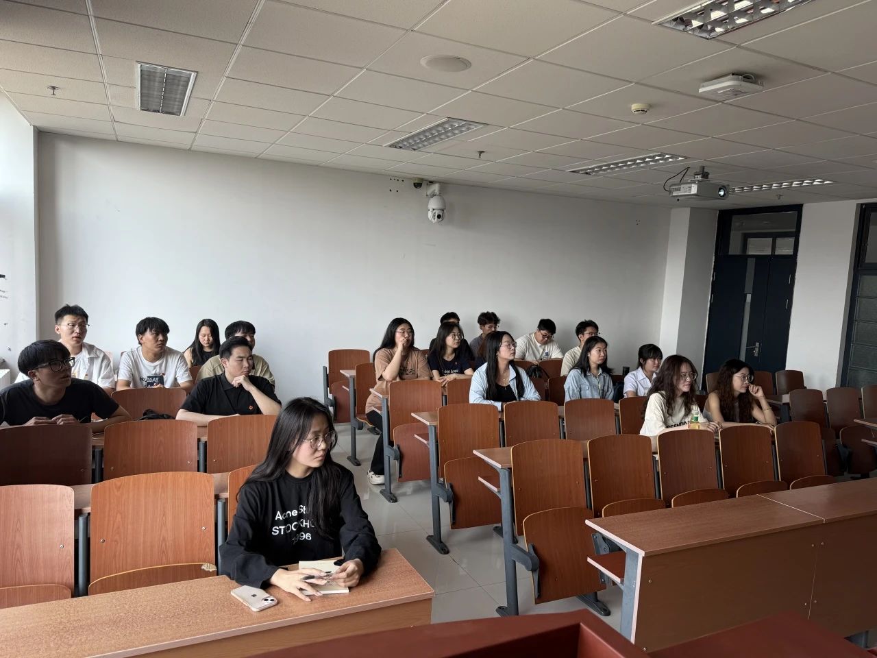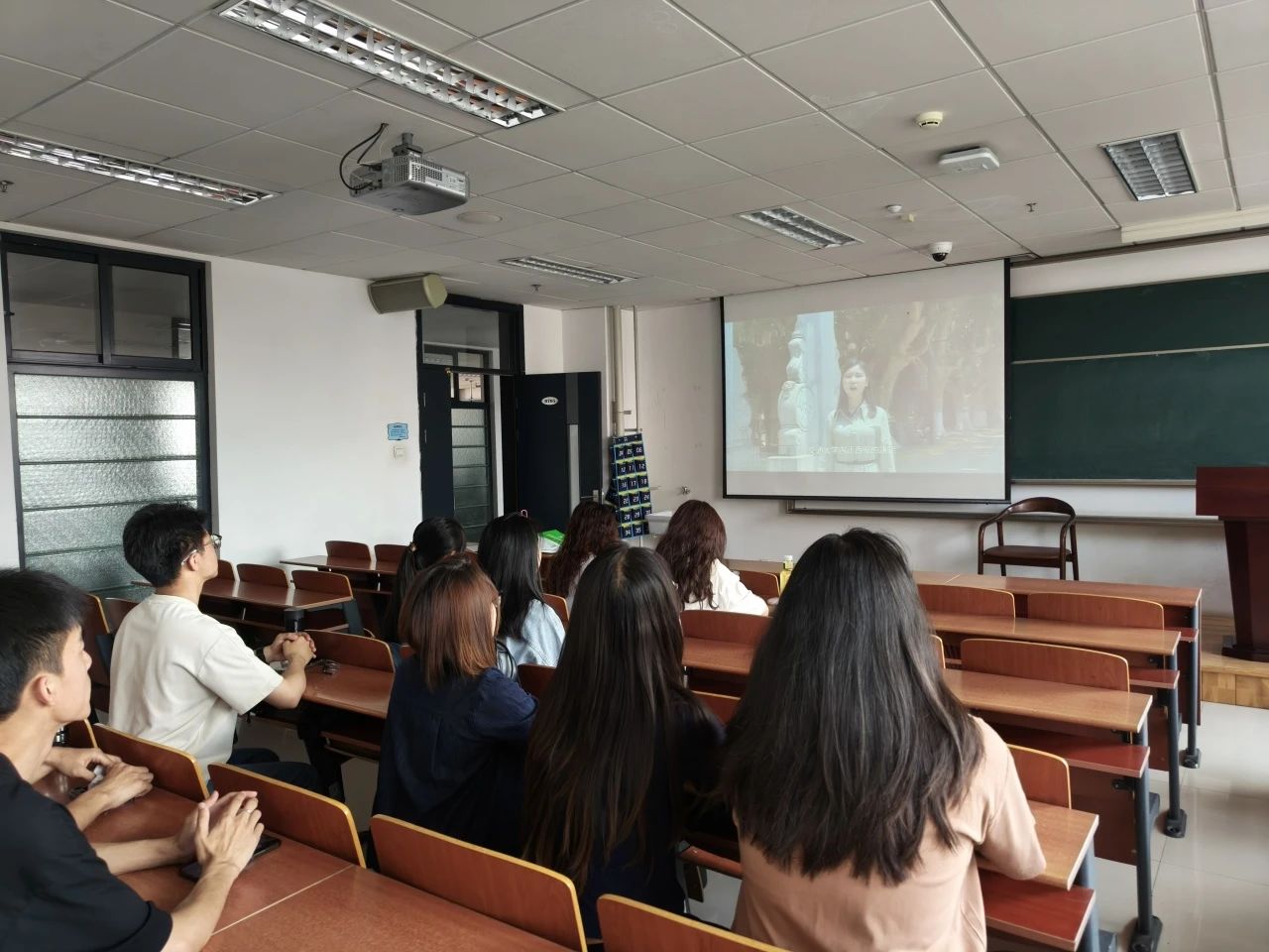 活动第一个环节,同学们齐聚教室,认真观看西安交通大学人文学院拍摄的展现西迁精神的视频,让大家深刻感受到民族团结的强大力量。同学们或专注凝视,或低声交流,沉浸在视频所呈现的团结氛围中。
