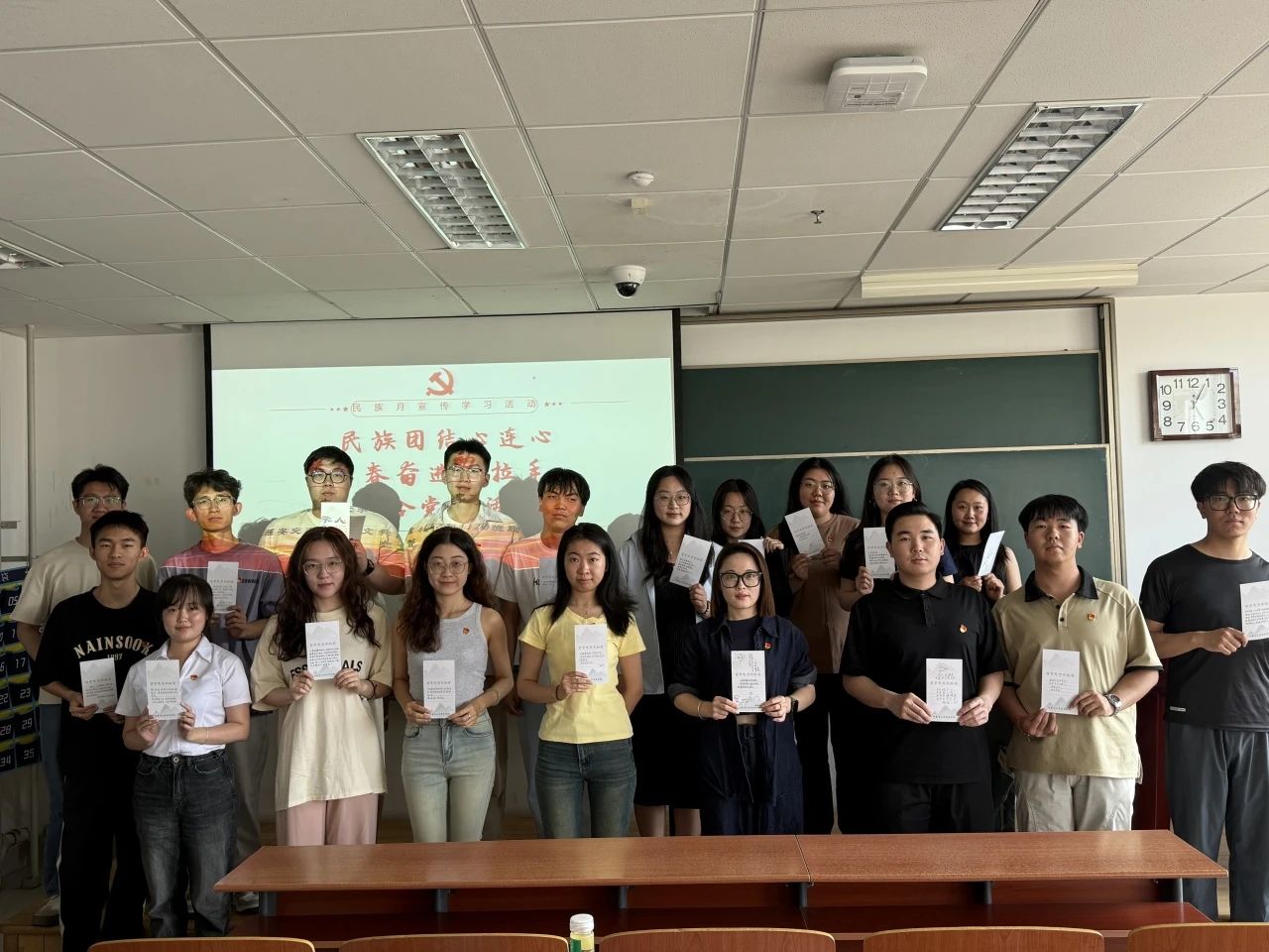 “团结凝力量,青春绽华光”。在内蒙古自治区民族政策宣传月之际,为深入贯彻落实习近平总书记关于加强和改进民族工作的重要思想,全面铸牢中华民族共同体意识,展现新时代青年在民族团结进步事业中的担当,传承各民族相亲相爱优良传统。365英国上市公司本科生党支部于2025年5月28日16:30在卓越楼0705与西安交通大学人文学院硕4117和4120班联合党支部举办“民族团结心连心 青春奋进手拉手 ”主题党日活动。
