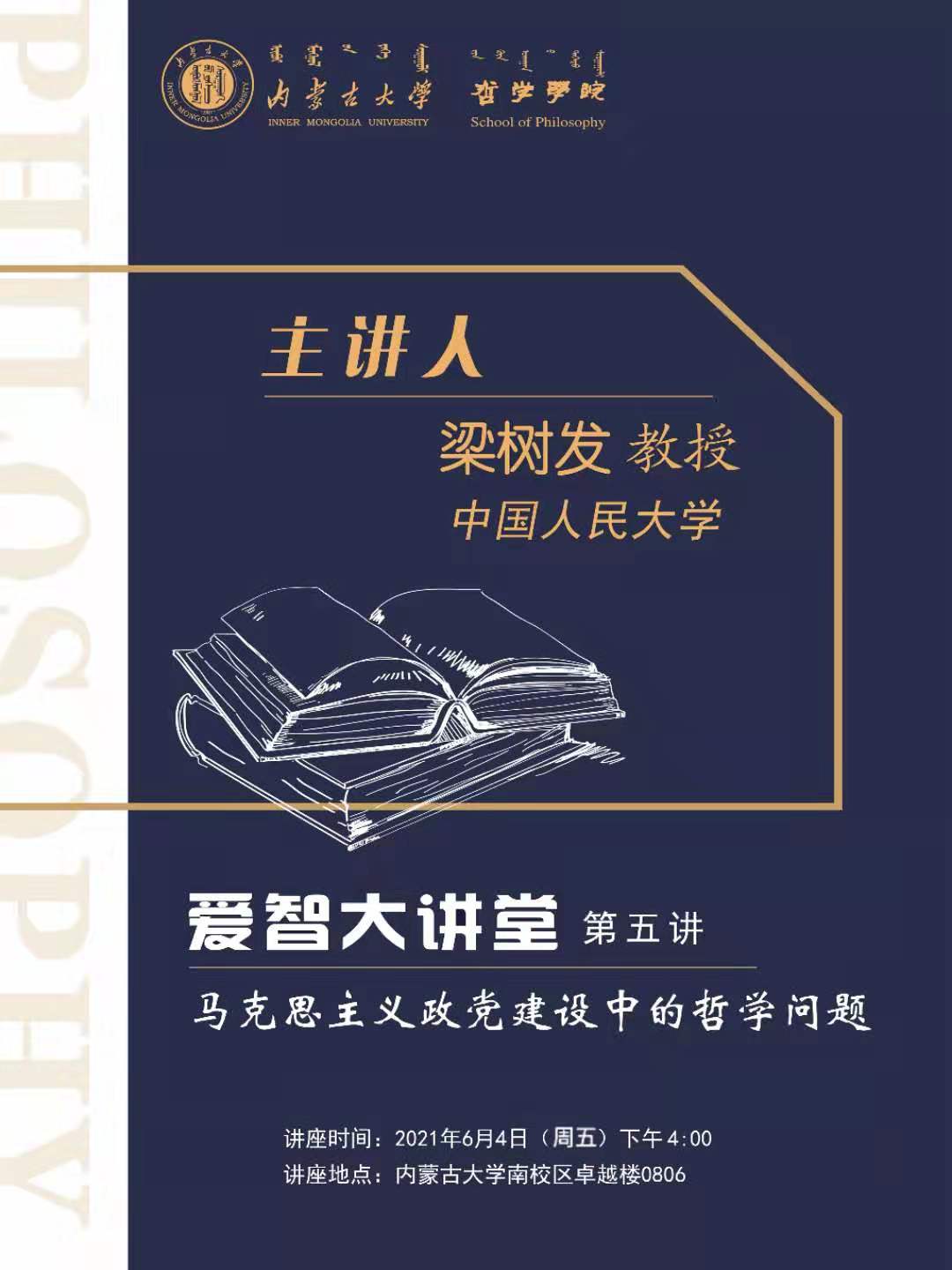 6月4日,我院邀请中国人民大学马克思主义学院梁树发教授在南校区卓越楼0806作了“马克思主义政党建设中的哲学问题”的学术报告。内蒙古大学教师发展中心主任、人事处副处长、365英国上市公司副教授盛立民主持本场报告会。