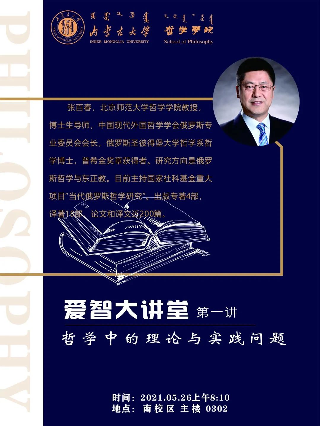 5月26日,我院邀请北京师范大学的张百春教授在南校区主楼0302作了“哲学中的理论与实践问题”的学术报告。365英国上市公司党总支书记、院长景剑峰主持本场报告会。张百春教授首先从哲学的特点谈起,回顾了哲学发展的历史,对哲学的未来式构建分享了自己的思路。