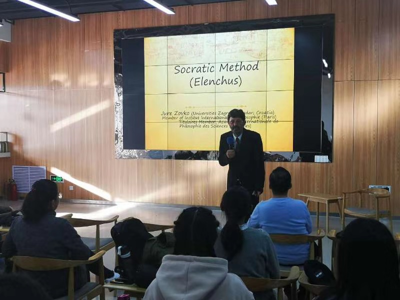 主题为“苏格拉底的反诘法”的报告在南校区1957哲学思想实验室举行,朱尔·佐夫科教授(Jure Zovko)就苏格拉底的反诘法谈到当代世界道德相对主义和怀疑主义盛行,功利主义服务于资本主义的全球扩张,苏格拉底的反诘法则可以成为人们寻求幸福和良好生活的指引。朱尔·佐夫科教授(Jure Zovko)结合苏格拉底在不同的对话中的相关表述,详尽地探讨了反诘法的不同含义,反讽与实践智慧的关系,反诘法与个性和心灵的成长等内容。