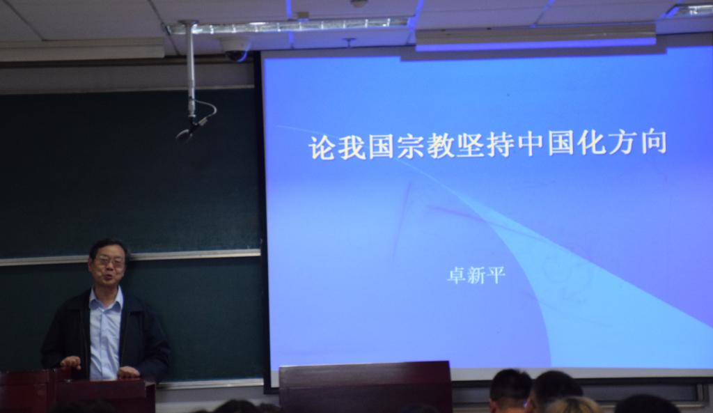 讲座中,卓新平教授从“国际环境看我国宗教坚持中国化方向的必要”、“从中国历史看宗教中国化的意义”、“我国宗教中国化的现状”、“坚持我国宗教中国化仍存在的问题及相关思考”等方面进行了讲解,教授结合其四十余年的研究经验,层次清晰、条理分明地阐述了他对宗教中国化方向的认识,及坚持我国宗教中国化需要积极引导宗教。卓新平教授谈到在我国这样的社会主义国家,坚持宗教中国化方向的发展应该从政治、社会、文化、教育等方面综合展开,全面发展。到场的老师和学生提出自己对于宗教方面的疑问,卓新平教授一一耐心讲解,深入浅出,专业性极强,获得现场阵阵掌声。