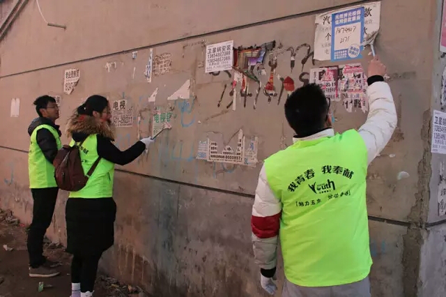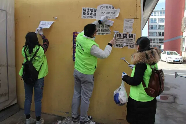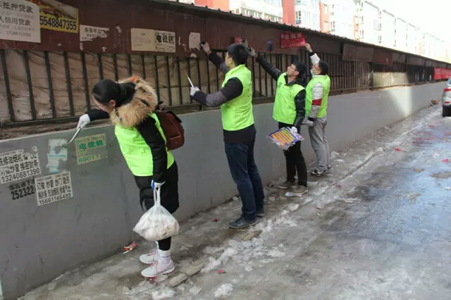 下午3点,身着志愿者制服的同学们统一登上大巴车,前往世纪新村社区。在志愿者们领取工具后,小黑河镇蔚书记和刘剑老师为大家做了具体的工作安排。同学们很快就有序地投入到志愿服务工作中,认真仔细地针对小区内小广告随意张贴的情况进行清理,组织搭配起来铲除墙壁和防盗门上的广告。同学们服务行为也得到了社区居民的称赞,不少市民纷纷驻足,关心询问和拍照,并表示对同学们发扬雷锋精神和传统美德,展示大学生风采的活动十分支持。