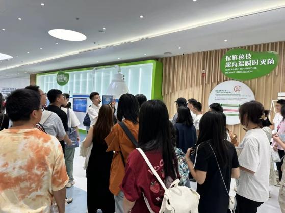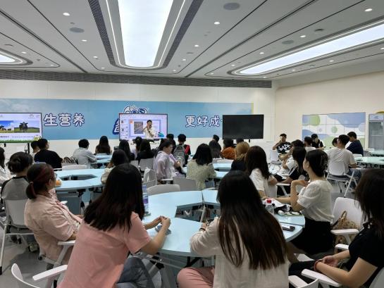 活动当天,同学们首先踏入了伊利智造体验中心,仿佛穿越进了奶业现代化的奇妙世界。在讲解员的生动讲解下,从草原的一棵草到手中的一杯奶,伊利集团的创新足迹清晰可见,其奶粉与液态奶全球智造标杆基地更是令人叹为观止。这不仅是一次对伊利集团发展历程和经营成果的深入了解,更是一次对中国奶业创新引领、绿色发展的生动见证。