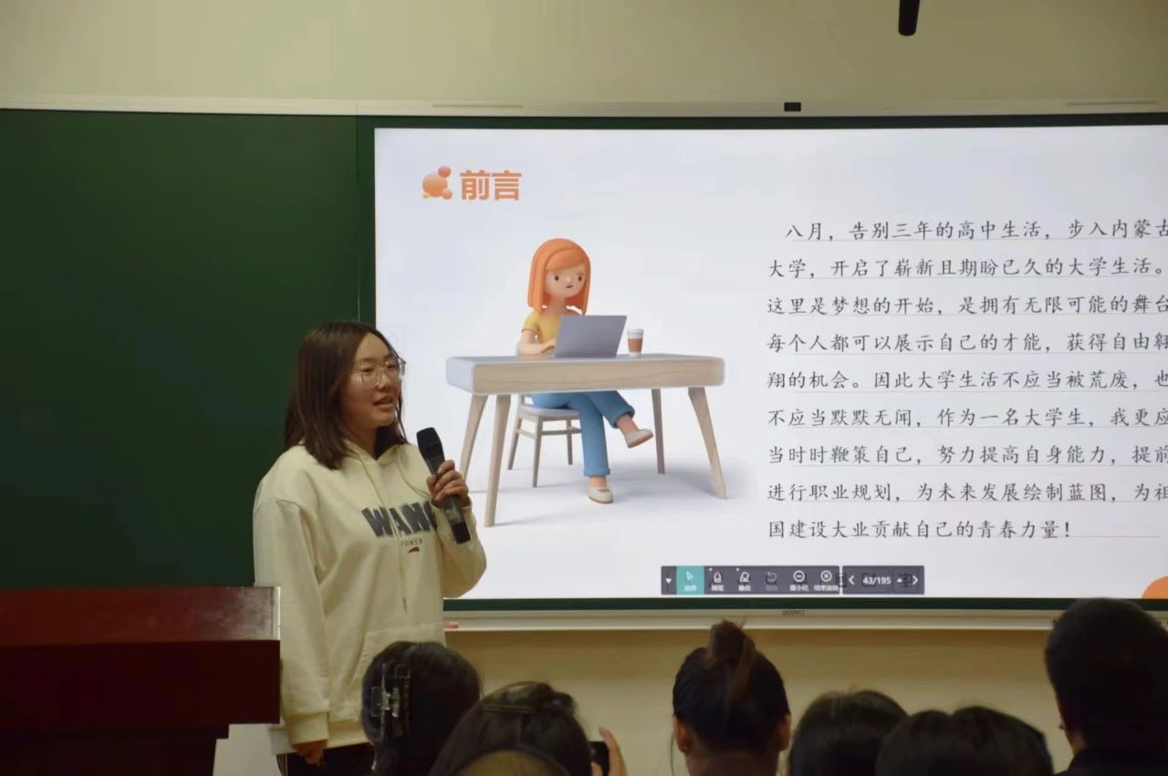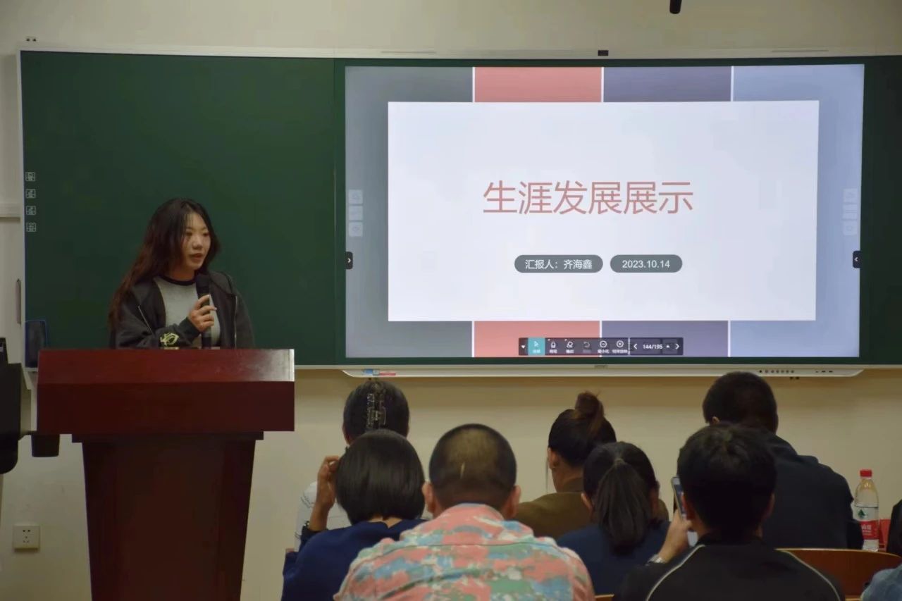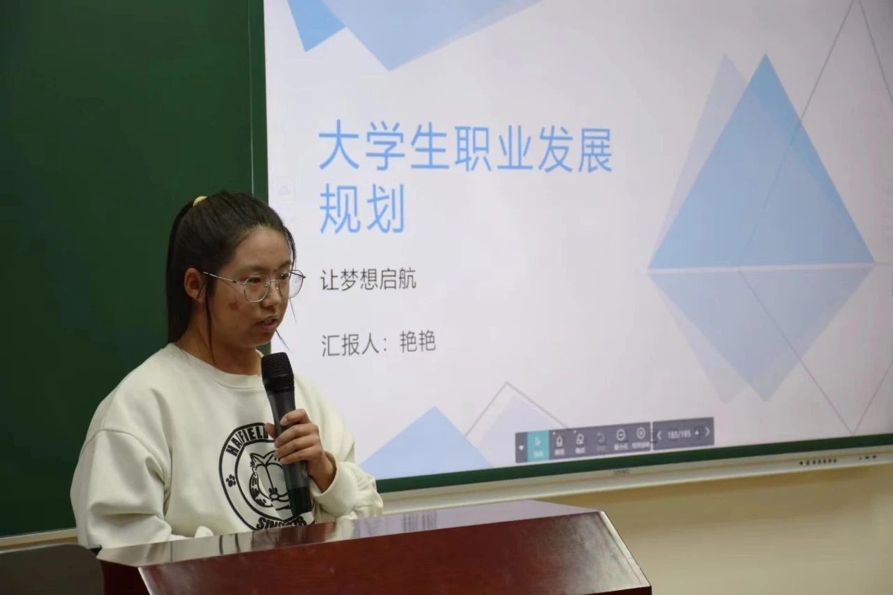 同学们围绕自我评估、职业规划、环境分析、学习和实施计划等方面展开讲解,对自己职业生涯进行了合理的规划,并提出了自己的奋斗目标。