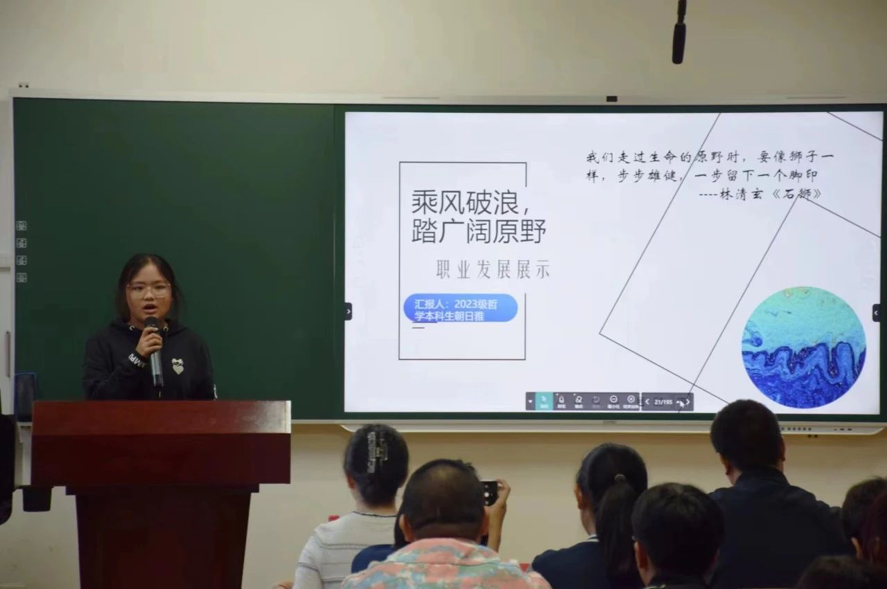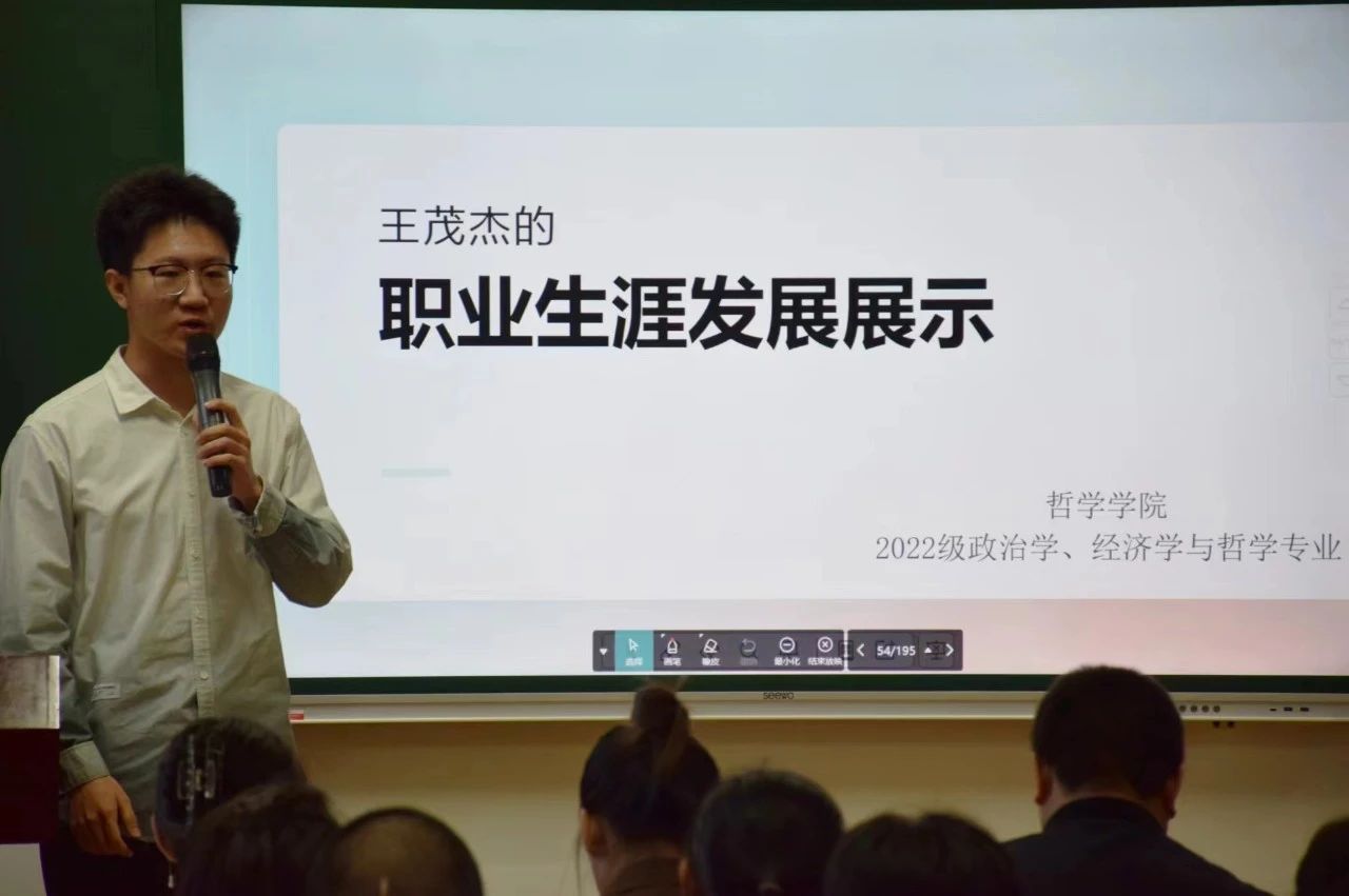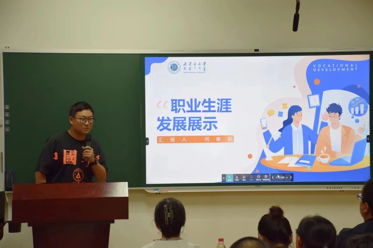 同学们围绕自我评估、职业规划、环境分析、学习和实施计划等方面展开讲解,对自己职业生涯进行了合理的规划,并提出了自己的奋斗目标。