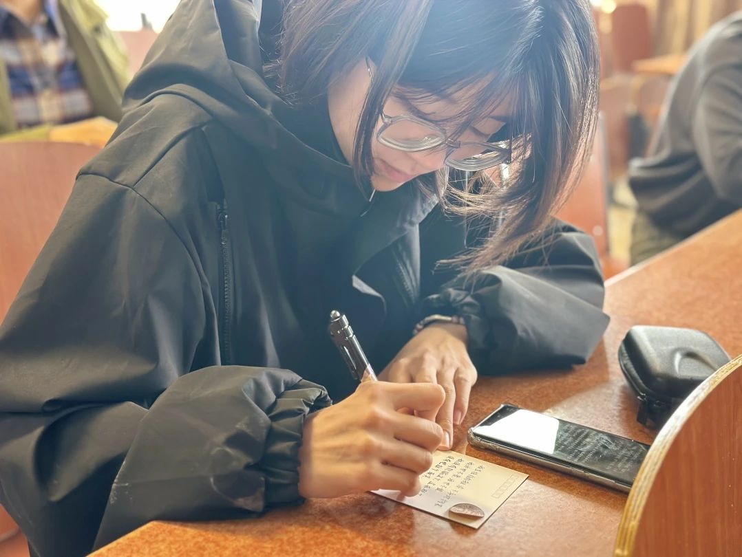 活动开始前,同学们根据自己的喜好选择明信片或信封,写下自己的期许。