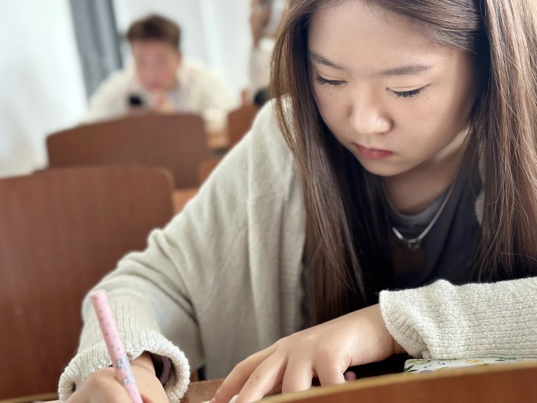 伴随着“坐下吧一起写封信,写给未来的自己”的歌声,同学们提笔写下期望,一字一句饱含深情,把自己的情感书写在信中,寄托给秋风,期待下一个秋日的到来。