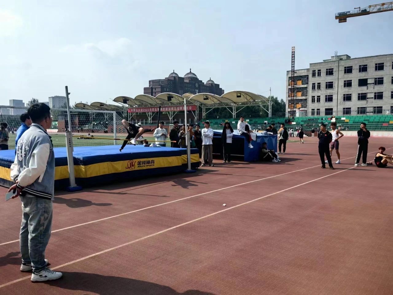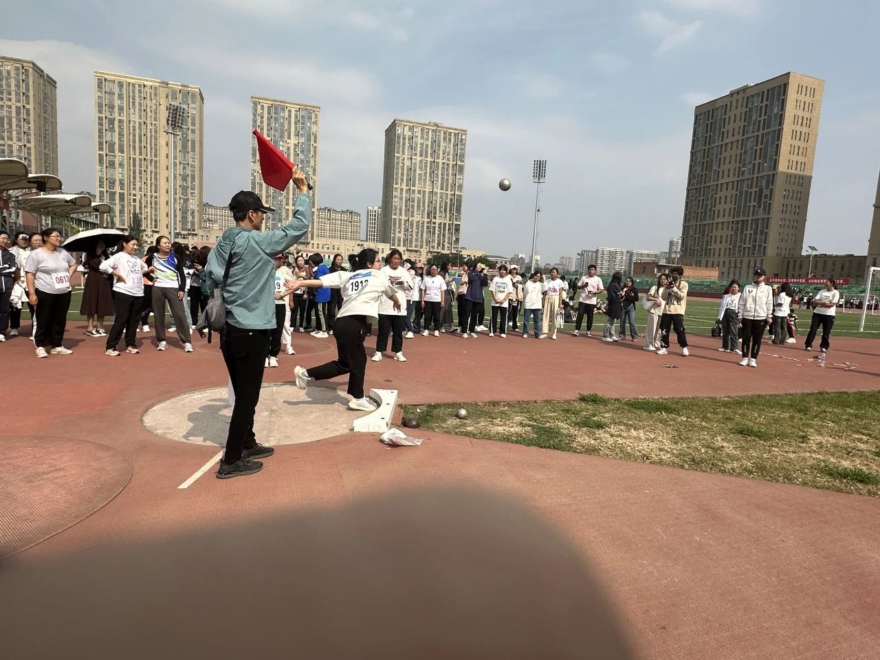 赛场的另一边铅球比赛和跳高比赛同样如火如荼的进行着。持球、预摆、滑步动作,最后手腕用力蓄力一发,弧线一闪而过。助跑、起跳、腾空过杆、落地,鹰鸢飞九天,鲤鱼跃龙门。