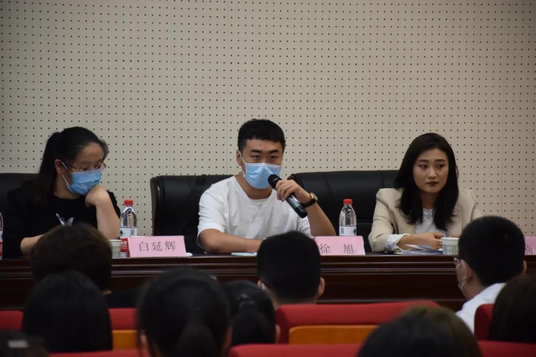 刘颖老师和张晓楠老师围绕教学及学生管理事宜进行入学教育。刘颖老师介绍了课程培养方案,并强调了选课注意事项。张晓楠老师围绕请销假制度、宿舍管理制度、奖助学金评选、第二课堂等方面做了详细介绍,并提醒新生培养安全意识,配合国家和学校做好疫情防控工作,同时还要注重思想教育工作。