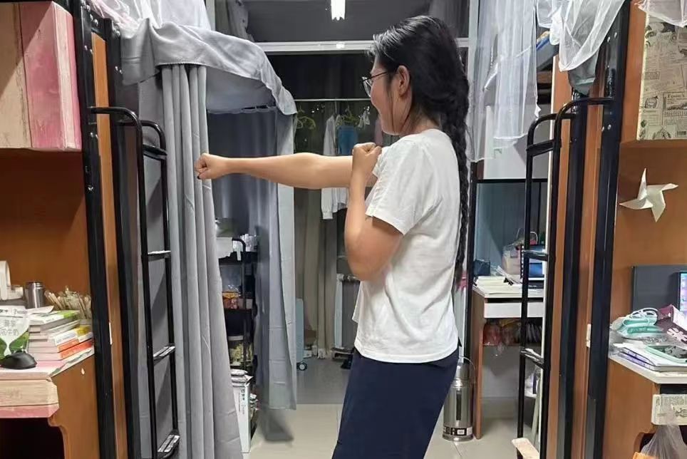 一个小时的运动课让我们受益匪浅。视频会议里,在马老师耐心又亲切的指导下,我们一起做了热身、伸展运动。短短一小时的运动就足以让我们全身放松,一起做运动也让宿舍里的气氛变得欢乐起来。由于疫情网课期间的久坐,眼睛时常盯着电脑,我们缺乏运动,进而导致了我们的颈椎常有酸痛感,浑身乏力。而适当的体育课程锻炼,就能很好地调节我们的身体状况。很感谢这次线上体育课给了我们一个锻炼的机会。在课程的最后,马老师还不忘叮嘱我们在之后的日子里要勤加锻炼,提高自身免疫力。