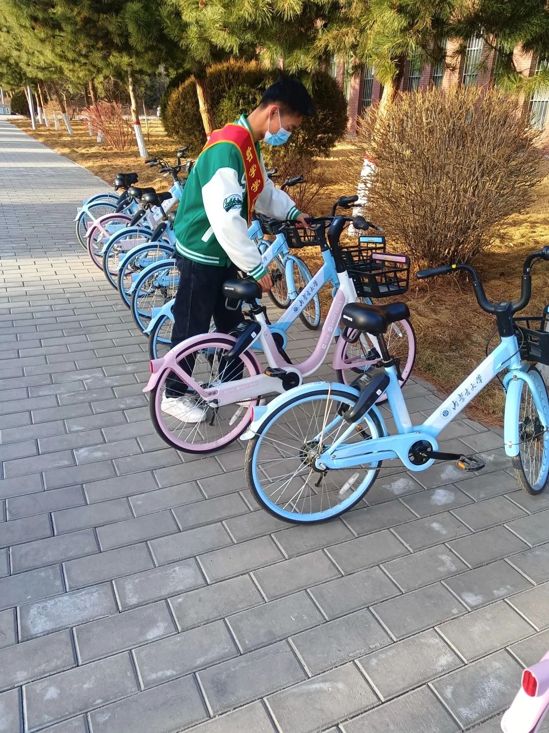 值班学生认真劳动,清扫艺术楼周边的废纸、落叶、灰尘等垃圾。他们还整理好了现场停放的自行车、电动车,让负责区域变得更加整洁。