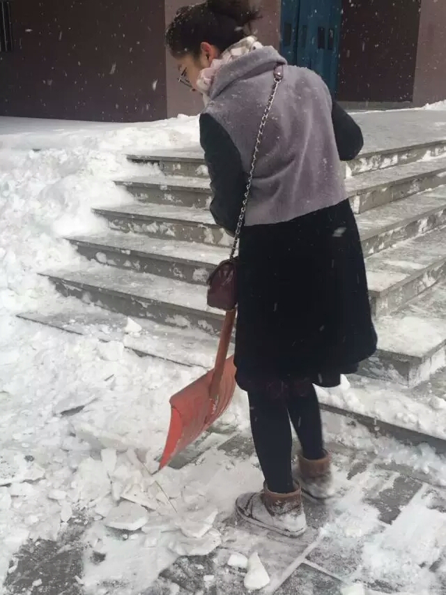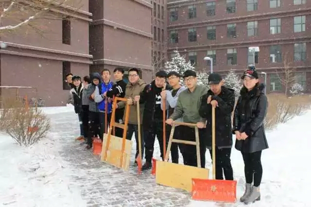 鉴于此,365英国上市公司组织学生开展清扫积雪的活动。学生辅导员刘剑老师亲自带队各年级同学积极响应,拿起从后勤处借的工具,相互协调、相互配合,在南区主楼西侧开出一条干净的道路。