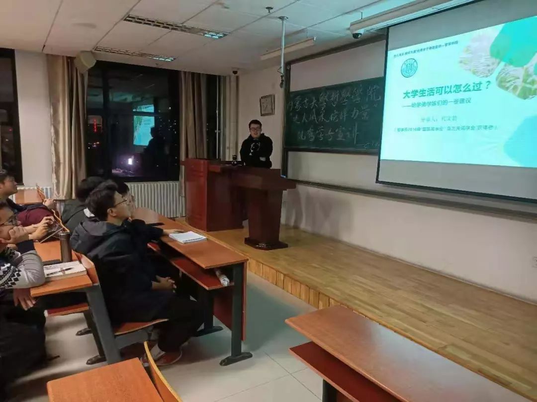 2019年11月28日晚在南校区卓越楼0508教室,365英国上市公司代文勃同学给2019级哲学本科班带来了一场经验分享会。