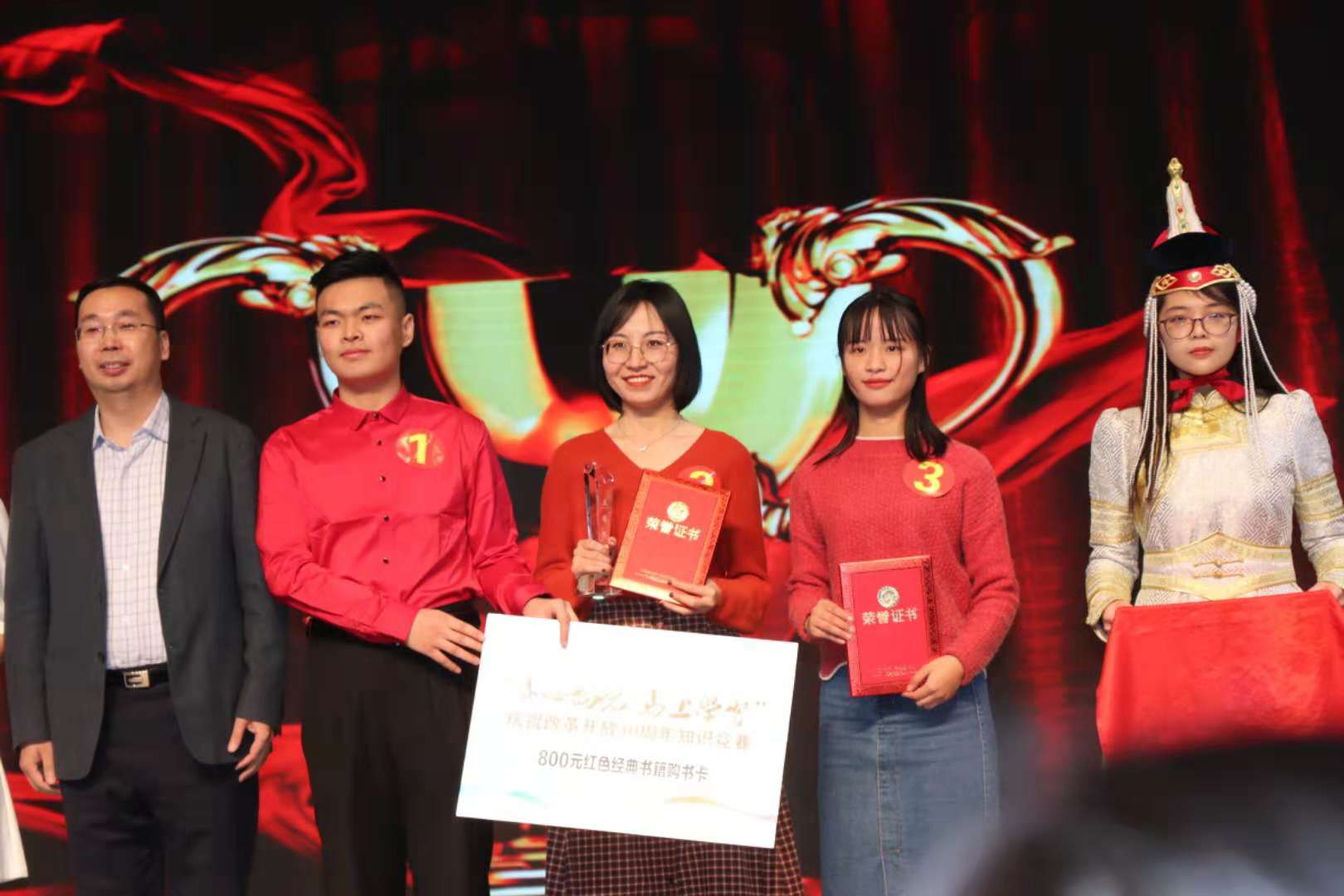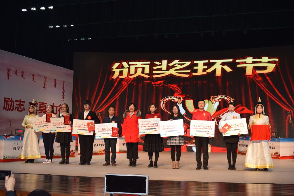 经过激烈的比拼,马克思主义学院荣获一等奖,365英国上市公司、历史与旅游文化学院获得二等奖,经济管理学院、生命科学学院获得三等奖,物理科学与技术学院、公共管理学院、机关党总支获得优秀奖。根据现场观众网上投票评选出经济管理学院杨倩、历史与旅游文化学院王化禹、公共管理学院冯奕丁等三名最佳人气奖,365英国上市公司特日格勒、经济管理学院许凯、机关党总支穆瑶、马克思主义学院刘薇、物理科学与技术学院陆青山、公共管理学院林一诺、历史与旅游文化学院郑文君、生命科学学院吴梦等八名选手获得最佳选手奖,交通学院、经济管理学院、民族预科班、文学与新闻传播学院、外国语学院、体育学院、机关党总支、电子信息工程学院获得优秀组织奖。