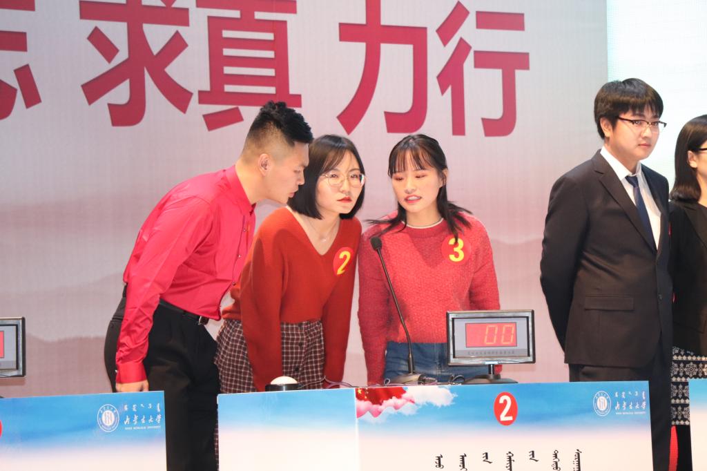 决赛分为个人必答题、小组必答题、抢答题和风险题四个环节,重点考查了习近平新时代中国特色社会主义思想、党的十九大精神、中国共产党历史、中华人民共和国改革开放史和习近平总书记考察内蒙古重要讲话精神、为内蒙古自治区成立70周年题词精神、给乌兰牧骑队员回信精神、在十三届全国人大一次会议内蒙古代表团审议时的重要讲话精神等内容。在个人必答题环节,选手们反应迅速,自信应对,难分伯仲;在小组必答题环节,选手们展示出深厚的理论知识储备,并将理论活学活用;在抢答题环节,各代表队你追我赶,竞争激烈,各支队伍渐渐拉开差距;在风险题环节,各代表队充分体现了自己的睿智与胆识,在谋略与知识的较量中相互竞争,比赛紧张激烈却又不失沉着冷静。
