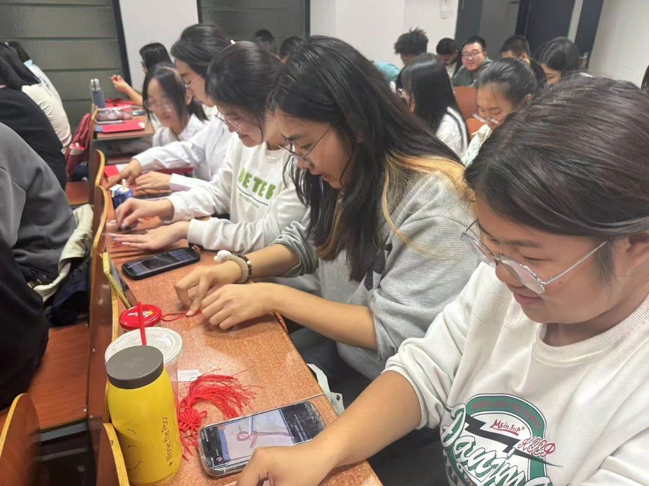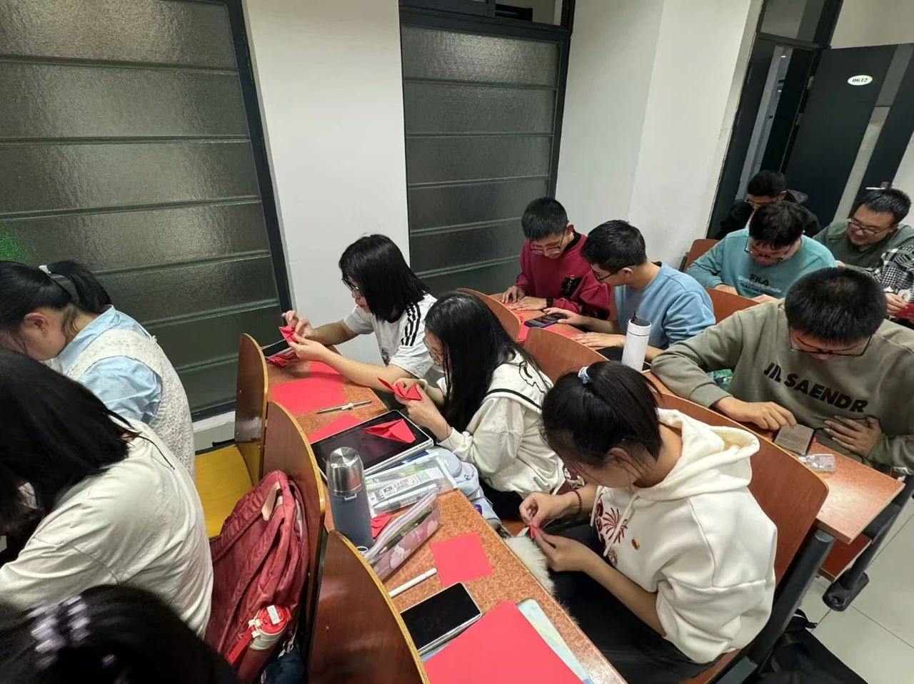 随后,团支部全体成员参与了“梳理爱国事件历史线”和“爱国关键词歌曲接龙”两项生动有趣的主题小游戏,体验了打中国结、折纸、绘制爱国主题宣传海报等匠心独运的手作活动,大家通过亲身体验感受到了爱国主义精神的深厚内涵。