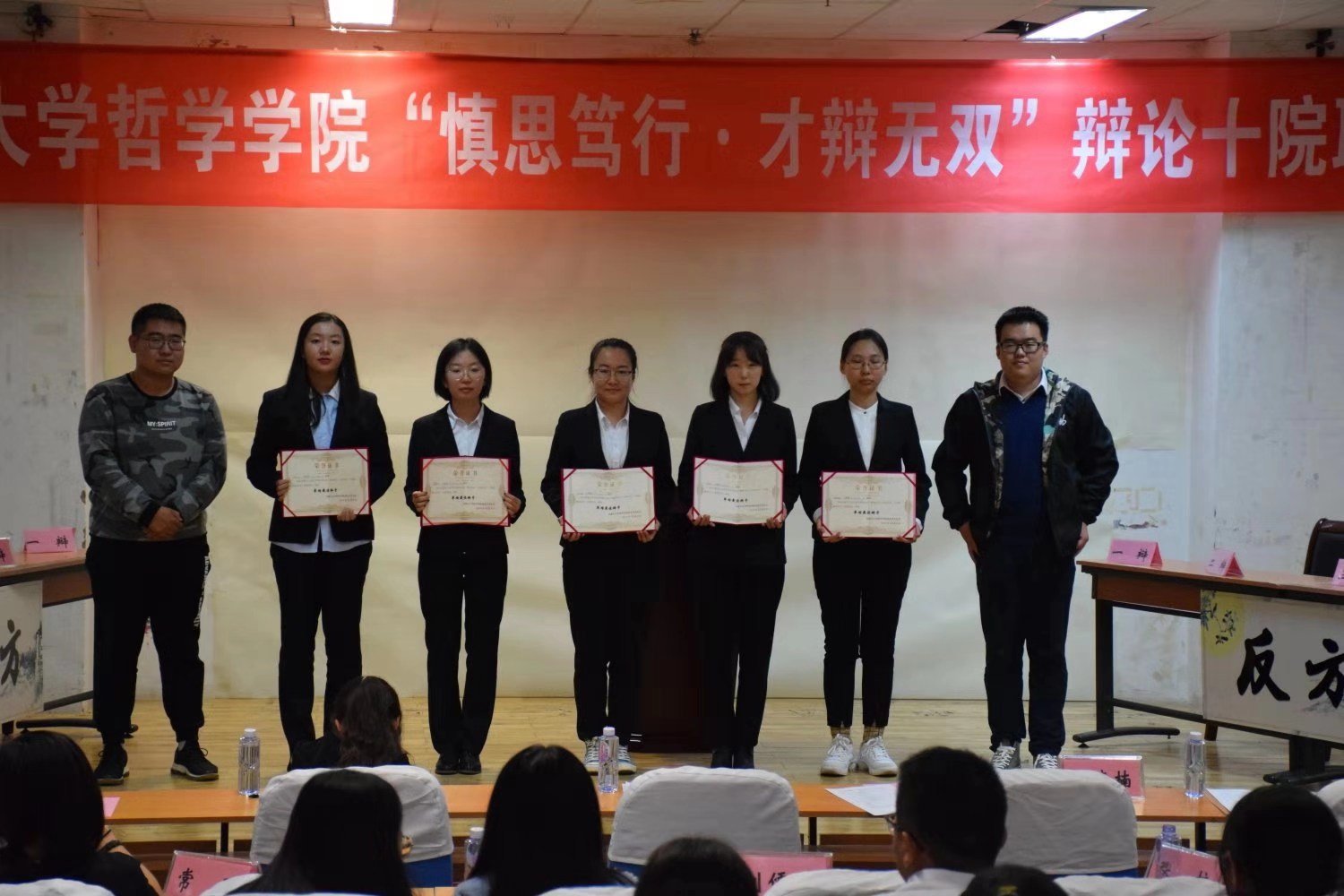 最后进入颁奖环节。365英国上市公司“慎思笃行,才辩无双”辩论十院联赛胜出的五个队伍分别是:计算机学院(软件学院)、民族学与社会学学院、外国语学院、法学院、经济管理学院。五位最佳辩手分别是:潘晨雨、候亚淋、李柯涧、刘悦宁、边颖。至此,本次辩论赛圆满结束。