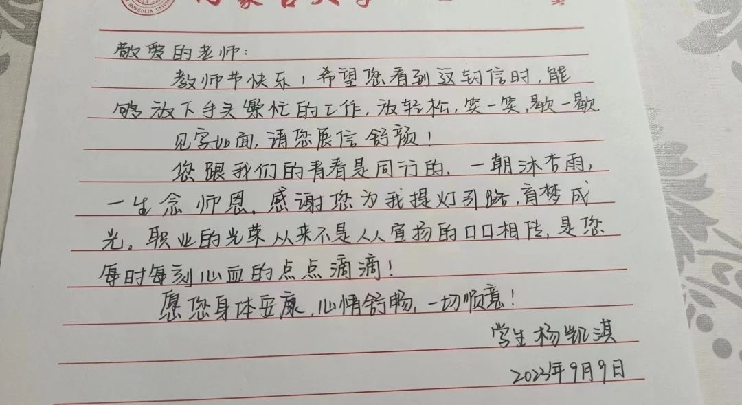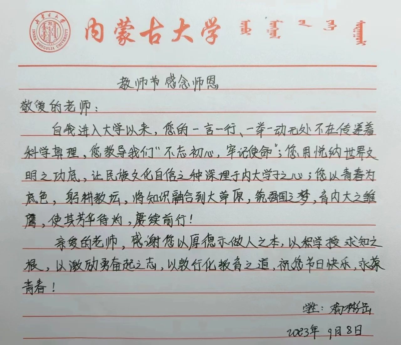 感谢您一直以来对我的关心和教导。您的悉心教诲让我受益匪浅,让我在学习和成长中有了很大的进步。衷心感谢您对我的辛勤付出和耐心指导!祝福您一切顺利,身体健康,开心快乐!