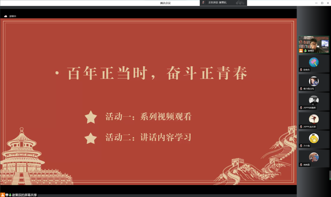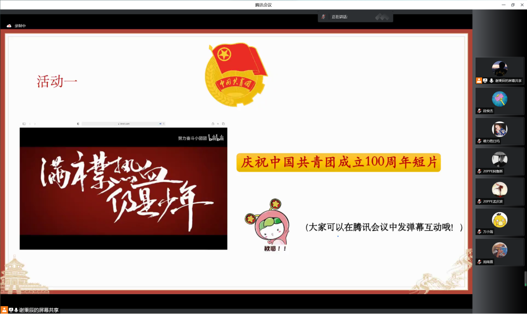 本次团日活动共分为“百年正当时,奋斗正青春”和“峥嵘百年史,砥砺青年行”两个部分。