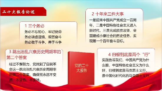 活动回顾了习近平总书记在二十大报告中的六点,强调了学习宣传和全面贯彻落实党的二十大精神和党中央决策部署的重要意义。