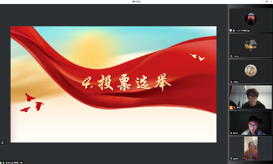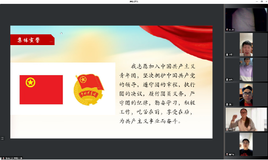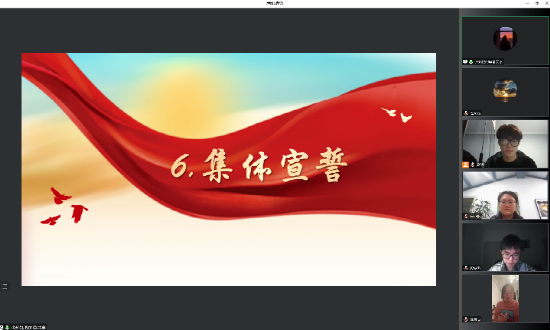 由高旭作领誓人,同学们起立并打开麦克风,举起右拳,进行集体宣誓。会议在宣誓完毕后结束。