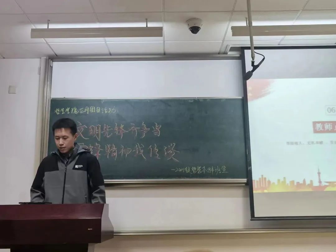 3月14日,2021级哲学专业团支部于南校区卓越楼0410教室开展活动周总结会。首先,由团支部书记刘长海依次向大家展示了“学习雷锋活动周”的丰硕成果。