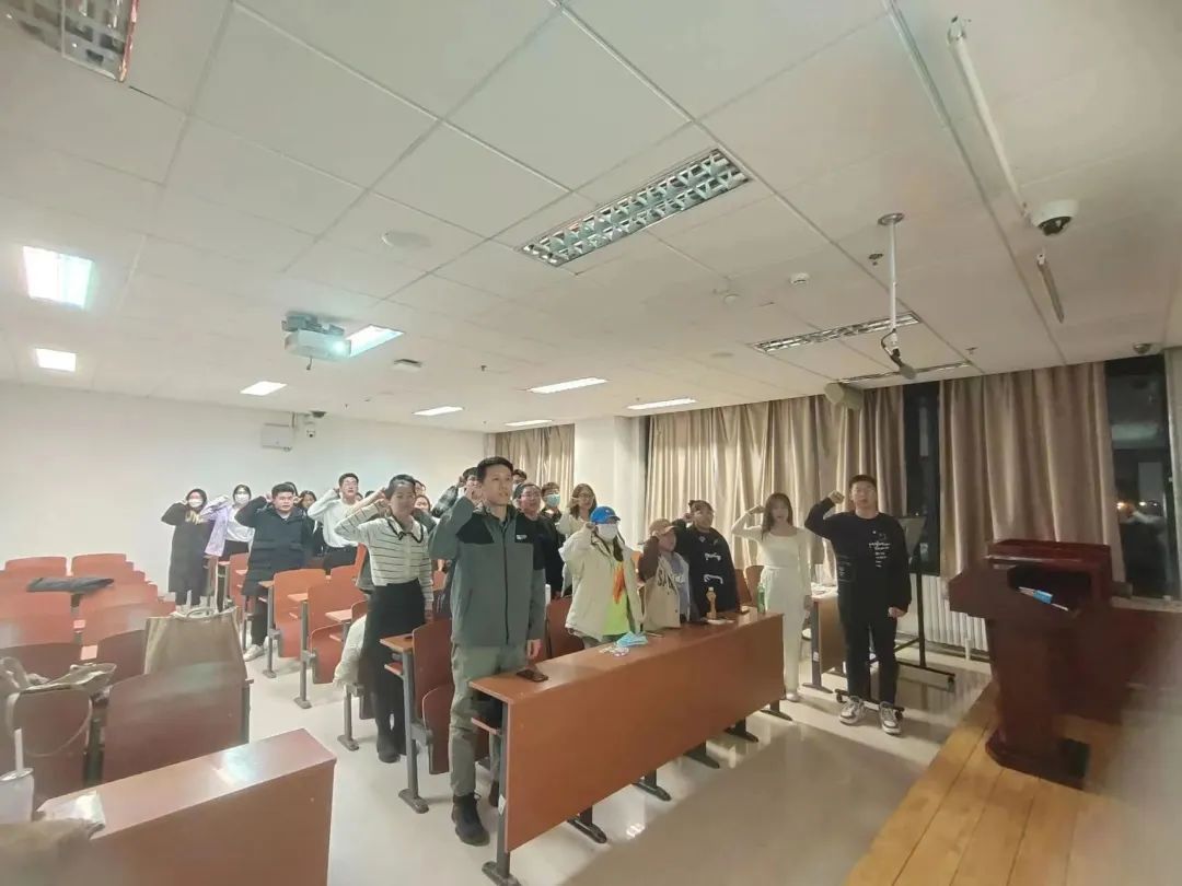 在活动最后,由团支部书记刘长海领誓,全体团员高举右拳,目光坚定,在铿锵有力的誓词声中,本次团日活动正式落下帷幕。