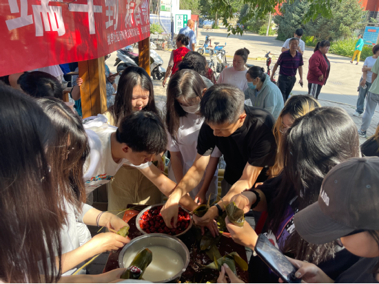 2022级哲学专业团支部同2022级政治学、经济学与哲学专业团支部于6月21日上午时分在桃李社区农校小区为当地老人包粽子,送温暖。