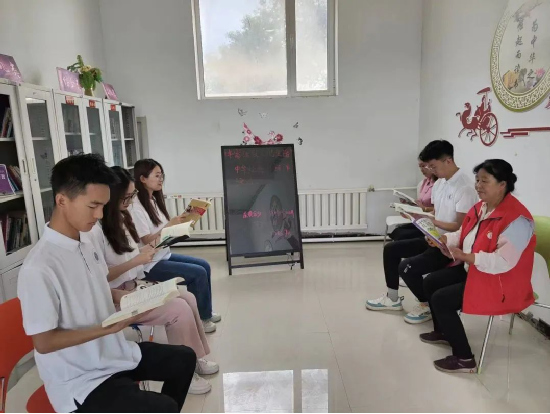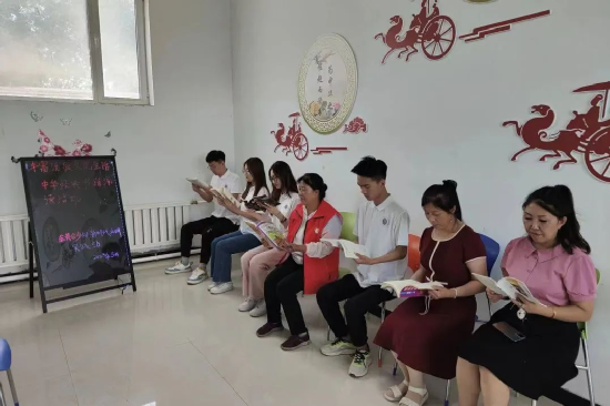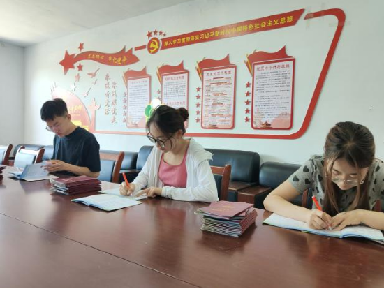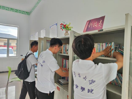 7月8日,队员们参加东黄合少村经典诵读活动,整理阅览室书籍,进行环境清洁;组织带领村民共同诵读经典,提升当地村民识字认字水平,与村民一起阅读名著,推动东黄合少村新时代文明实践站活动的有序开展。在此次活动中充分发挥大学生的引领示范作用,促进村民阅读水平的提升,营造学习经典、热爱阅读的良好氛围。