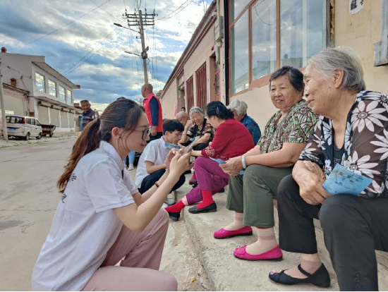 面对老人,队员们开展学习党的二十大精神、反电信诈骗、铸牢中华民族共同体意识等宣讲活动,同时基于对村民医疗信息的掌握,开展医疗卫生专项宣讲会,为村民普及健康知识,推动提升村民的防范意识和预防能力,在当地形成广泛的传播效应。