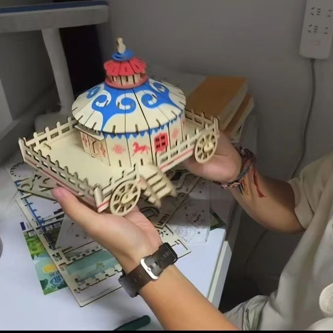 团支部书记燕姝冰组织支部团员制作相关手工艺品,其中包括蒙文书法作品、蒙古包模型和民族团结剪纸,并在团日活动总结会中一一展示,带领团员青年了解民族特色文化。