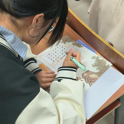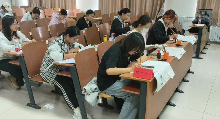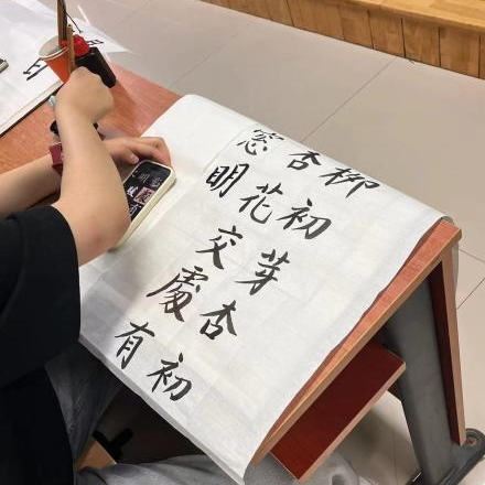 临碑帖,笔走龙蛇写出华夏历史;绘群芳,水墨丹青画出千年文化。比赛开始,参赛同学开始创作各具风采的书画。